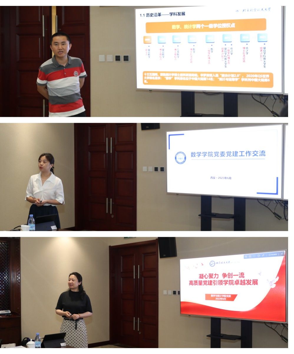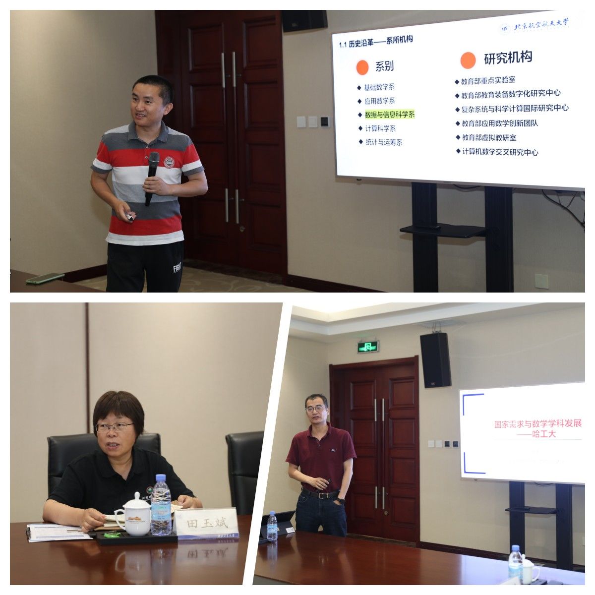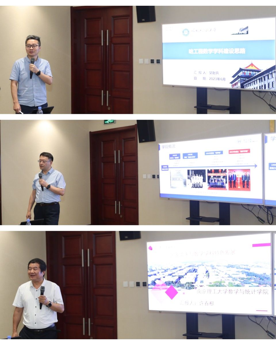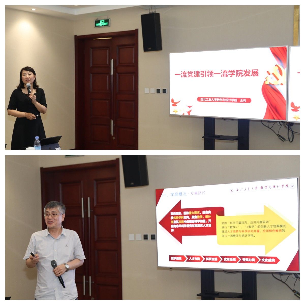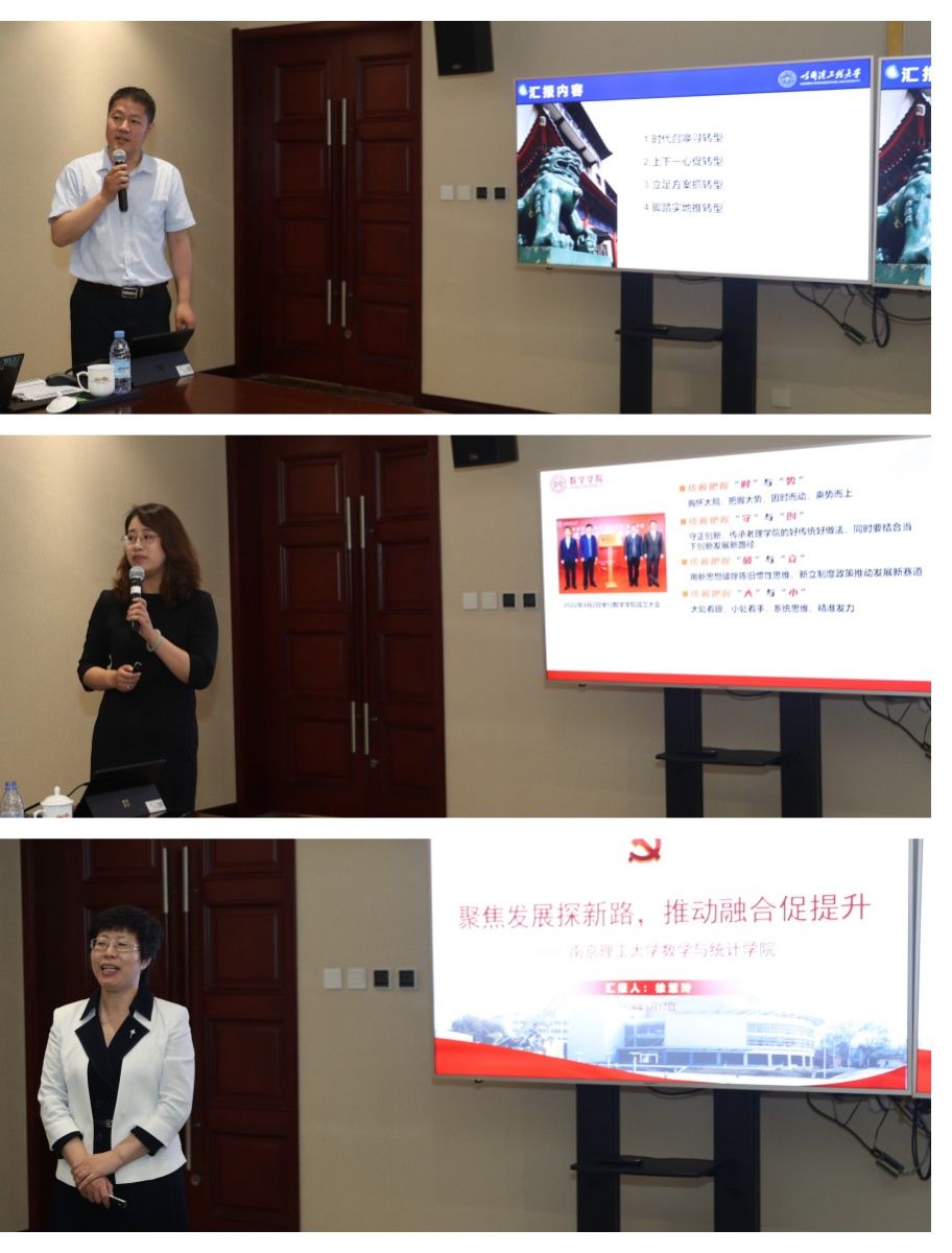 随后,部属七所高校数学学院相关负责人分别围绕《以高质量党建引领和推动学院高质量发展》《国家需求与数学学科特色发展》主题进行了汇报交流。北京航空航天大学数学科学学院在党建工作中形成的“夯基础、促改革、做党建研究”的工作思路,在学科发展工作中提出的“大数学”立体化数学人才培养体系的建立;北京理工大学小宝寻花 在党建工作中形成的“三确保、两提升、一促进”的工作理念,在学科发展工作中提出的对硬核基础数学队伍的培养方式;哈尔滨工业大学数学学院在党建工作中提出的打造“金牌专业、金牌课程、金牌教师”,实现“出成果、出名师、出人才”的学院奋斗目标,在学科发展工作中提出的“三个对标”的科学研究发展策略;哈尔滨工程大学数学科学学院在党建工作中提出的“四转型”工作思路及举措,在学科发展工作中推行的“六计划”重点举措;南京航空航天大学数学学院以“四融”党建推动学院高质量发展的工作思路,在学科发展工作中打造的“一体两翼双助力”的发展体系;南京理工大学小宝寻花 形成的“三开三共”的党建工作理念和“三融三聚”的党建工作思路,在学科发展工作中推行的创新发展思路以及我校小宝寻花 在党建工作中“1745”发展思路,在学科发展工作中提出的“数学+”“+数学”的创新人才培养模式。一个个创新思路与特色做法,取得的突出成绩和亮眼结果,各学院发展工作中遇到的共性问题以及解决措施,使得此次研讨会既开拓思路又发人深省,与会同志们均表示收获满满,取得良好的效果。
