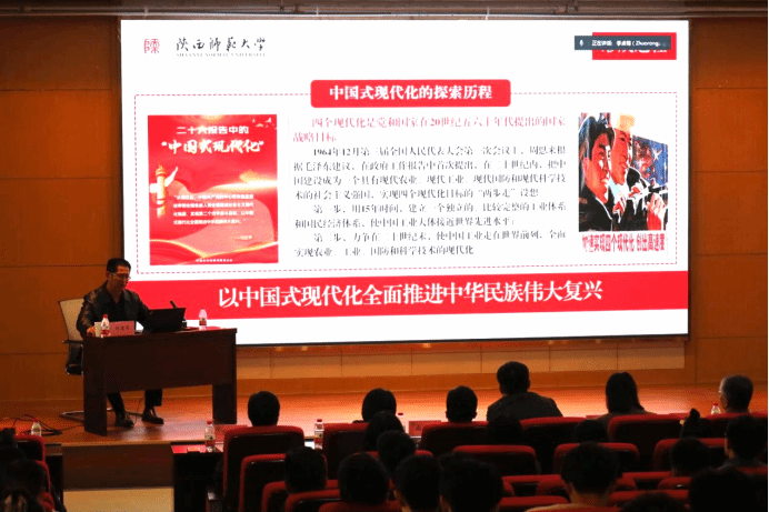 11月8日,小宝寻花 联合电子信息学院共同举办学习贯彻党的二十大精神专题党课,特邀陕西师范大学远程教育学院书记刘建军作了题为《以中国式现代化全面推进中华民族伟大复兴》的党课。小宝寻花 和电子信息学院理论学习中心组成员、师生党员代表、青年学习理论小组成员共200余人参加会议。会议由小宝寻花 党委书记王莉主持。