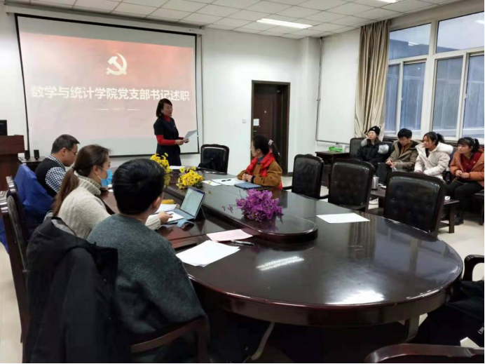述职结束后,在场的全体党员重温了入党誓词,激励自己不忘初心、牢记使命、砥砺前行、永远奋斗。随后王莉进行总结发言,希望各个支部能够进一步加强规范化、标准化、特色化建设,围绕中心抓党建,抓好党建促发展,各支部要将各自工作的亮点和特色凸显出来,把党建工作做细做实,为学院“双一流”建设、数学学科发展贡献重要力量。
