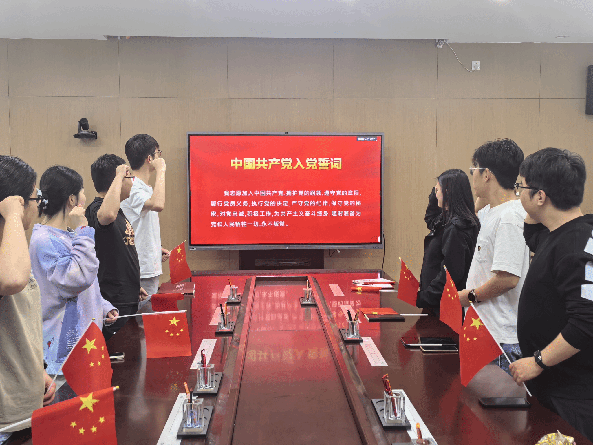 本次主题党日活动在庄严的国歌声中拉开序幕,全体党员齐唱国歌,共同表达了对祖国的无限热爱和崇高敬意。随后,全体党员重温入党誓词,铿锵有力的誓言再次坚定了大家为共产主义事业奋斗终生的决心与信念。