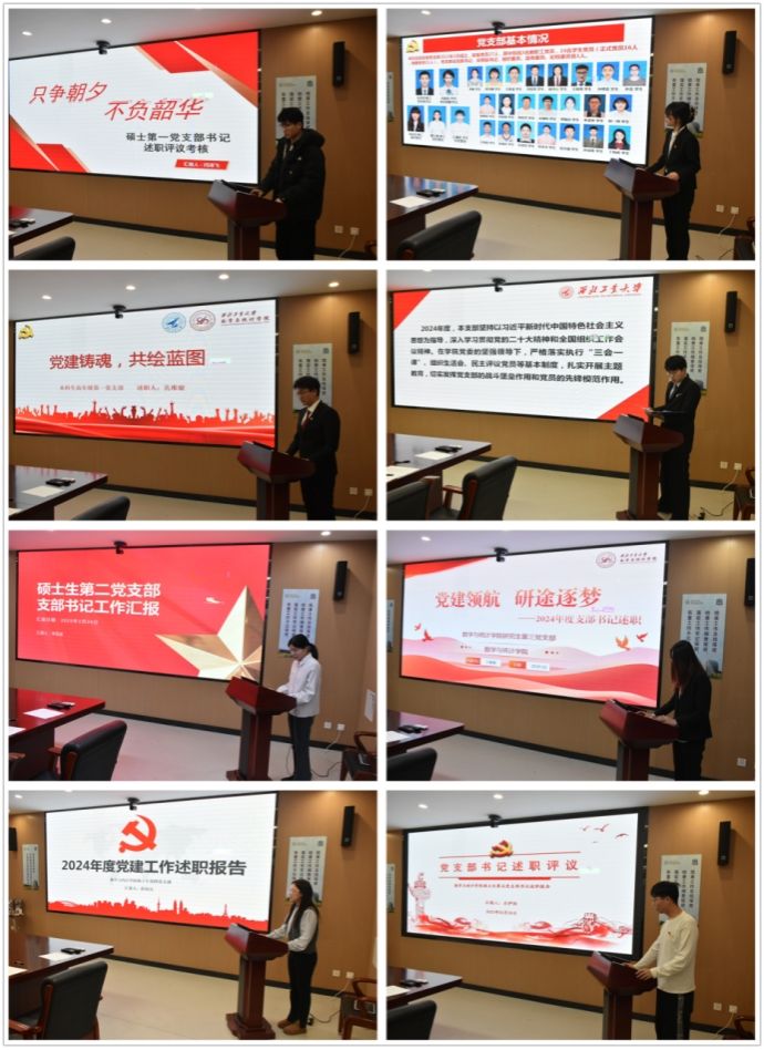 随后,4个教职工党支部书记及16个学生党支部书记依次述职,参会评委根据述职情况进行现场打分。