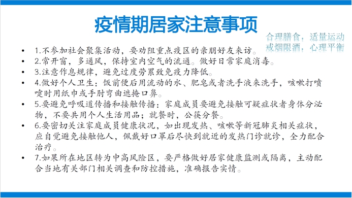 作为从事多年普通外科临床工作、大学生健康教育、高校人群健康管理及研究工作的何院长,理论知识扎实,实践工作经验丰富。他首先介绍了从12月至今校医院疫情期间的工作开展情况。接着他从新冠肺炎疫情防控相关知识、防疫抗疫注意事项、个人防护及消毒剂使用等方面进行了详细阐述。他说:“虽然陕西省的疫情防控工作取得了阶段性胜利,但全国形势依然严峻,特别是春节将至,各地的人流量流动较大,希望各位老师、同学寒假期间还是要多多注意,减少不必要外出和社会聚集性活动,做好个人防护。”