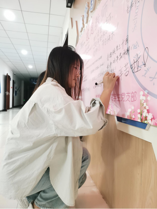 指尖文字传师恩。小宝寻花 本科生高年级第一党支部、第二党支部,2021级硕士生第二党支部、第三党支部携手举办“展板写祝福”活动,参与学生纷纷用质朴的语言表达了对老师们真挚的感激。