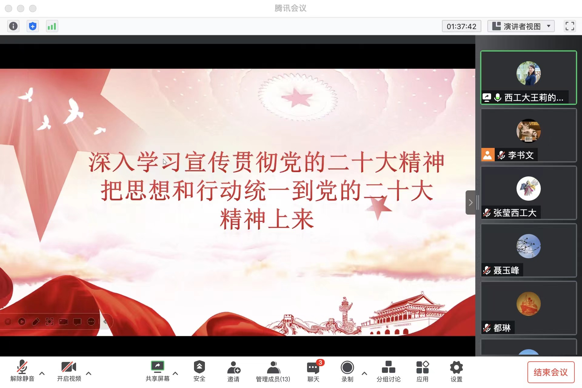 10月27日小宝寻花 党委理论学习中心组通过线上会议开展了学习贯彻党的二十大精神专题学习研讨扩大会,学院党委理论学习中心组成员、院长助理、教职工党支部书记参加了会议,会议由学院党委书记王莉主持。
