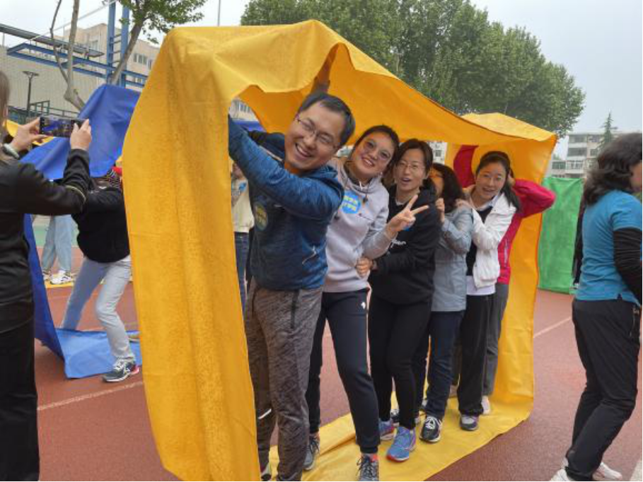 最后一个项目是“欢乐贪吃蛇”。赛场上,每位老师都表现出了顽强的意志和拼搏精神。大家都鼓足了劲、涨红了脸,抓着前面老师的衣服全力以赴奔跑。现场加油声、欢呼声,此起彼伏,将比赛的气氛拉到了最高潮!