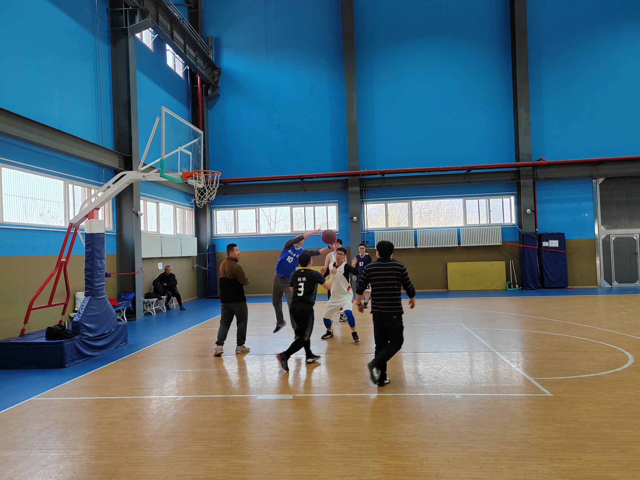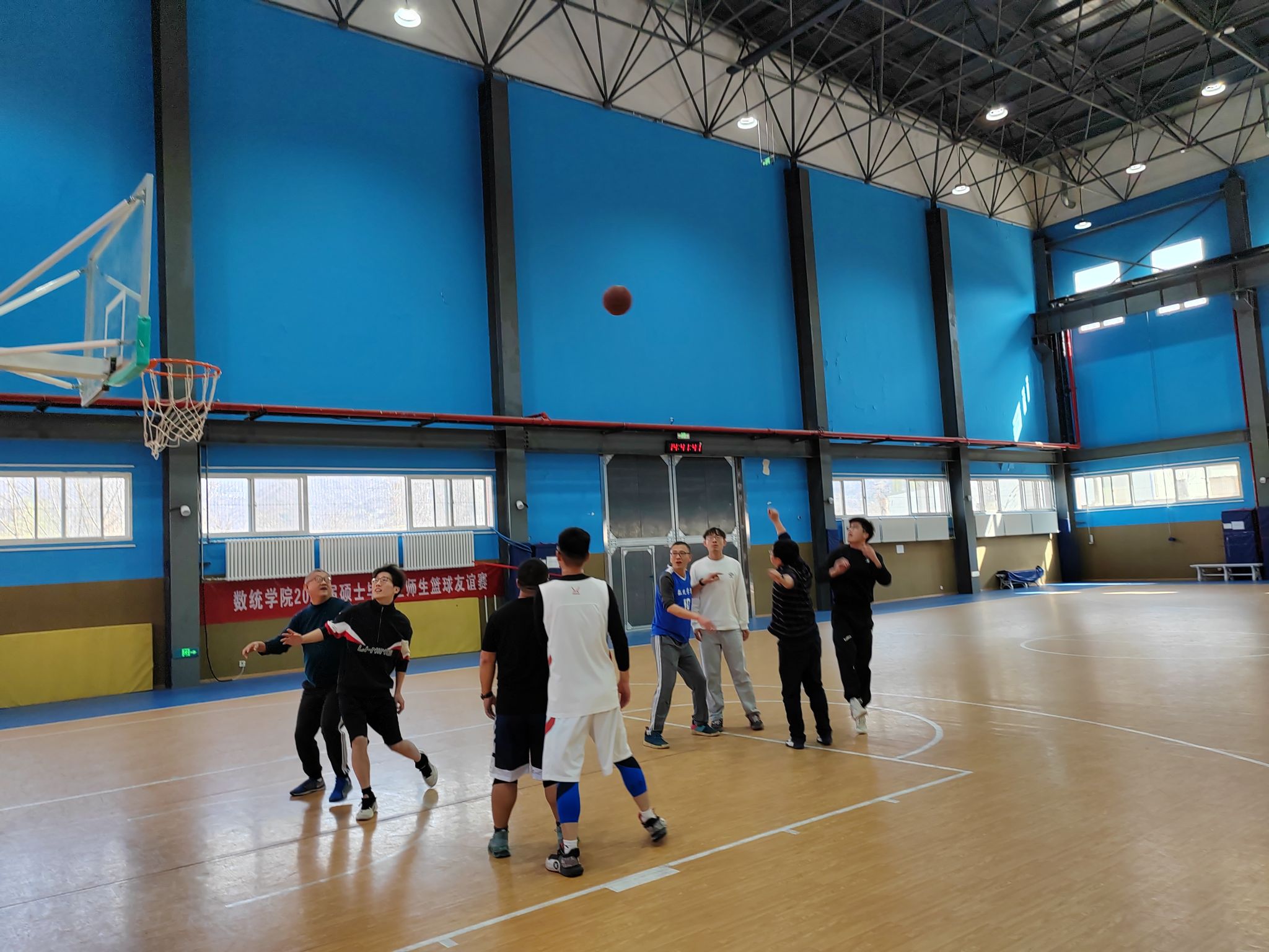 为进一步丰富学院毕业生毕业教育活动内容,增进师生情谊, 3月18日下午两点,小宝寻花 工会在长安校区家属区体育馆内成功组织了一场精彩纷呈的2025届硕士毕业师生篮球友谊赛。学院工会主席佘红伟、计算科学系主任赵俊锋、应用概率系主任王亮以及学院多名教师代表、8名硕士毕业生代表共同参加比赛。