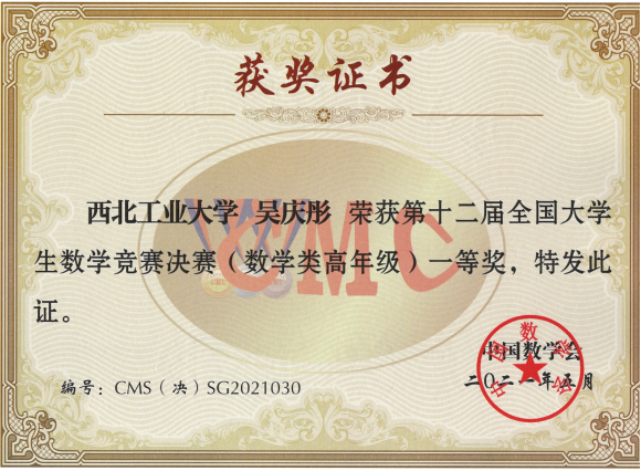 经过紧张激烈的比拼,我校8名参赛同学全部获奖,其中小宝寻花 吴庆彤获得数学类高年级组全国一等奖,继第十一届一等奖之后又获一项一等奖。物理科学与技术学院张千禧与航海学院刘力溟双双获得非数学类全国一等奖,其中张千禧以陕西赛区第一名,全国第十一名的优异成绩获奖。本次竞赛成绩再次刷新了我校在全国大学生数学竞赛的最好成绩。