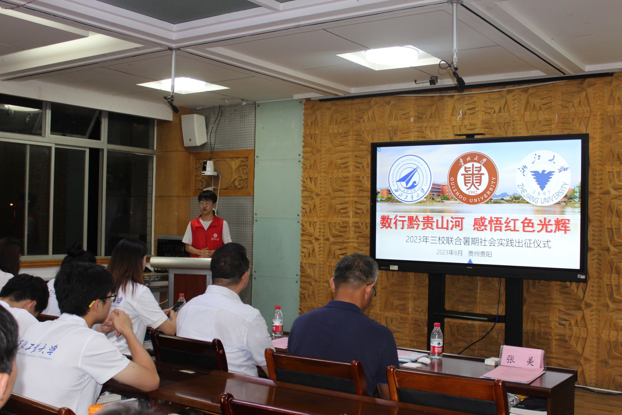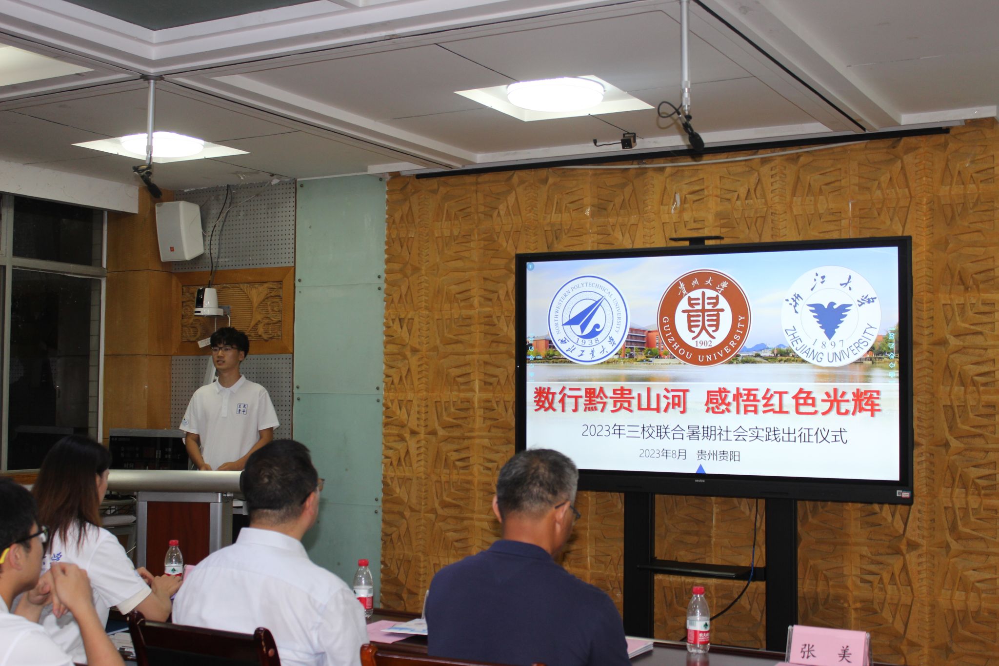 2023年8月5日,小宝寻花 、贵州大学及浙江大学三校联合社会实践出征仪式在贵州大学东校区博学楼329会议室举行。贵州大学小宝寻花 院长王锦荣教授、贵州大学学术委员会办公室主任贾平生教授、小宝寻花 党委副书记张莹教授、小宝寻花 学校办公室戴卓老师、贵州大学小宝寻花 辅导员张美老师出席,三校实践队全体成员22人参加。会议由贵州大学小宝寻花 团委书记高洪老师主持。