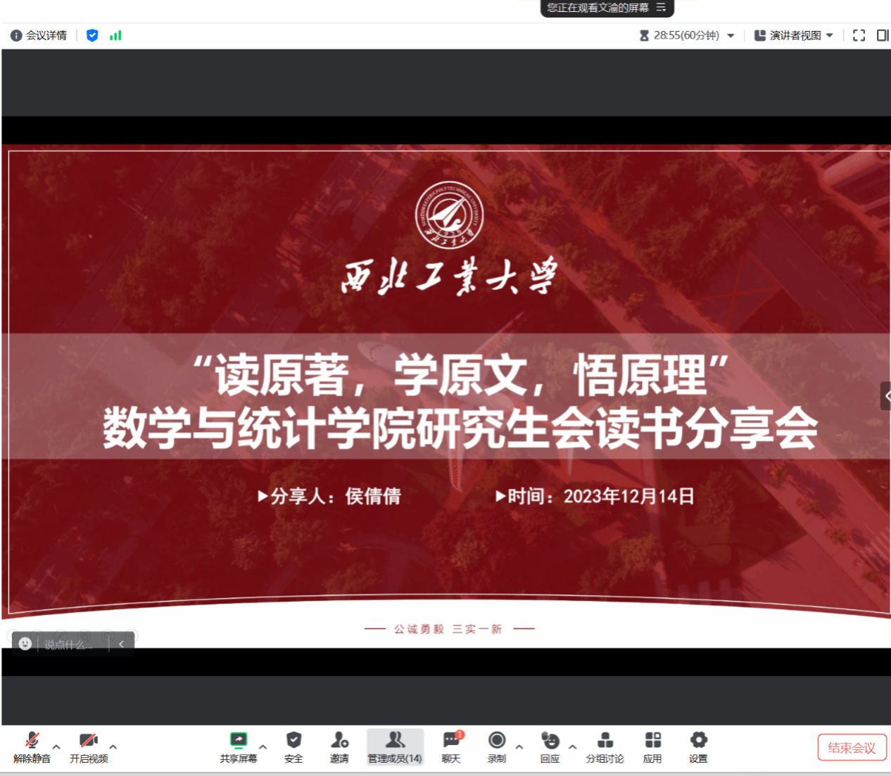 12月14日,在线上读书分享会中,研究生会成员侯倩倩带着大家学习了《习近平著作选读第二卷》--努力实现高水平科技自立自强。当今世界百年未有之大变局加速演进,国际环境错综复杂,世界经济陷人低迷期,全球产业链供应链面临重塑,不稳定性不确定性明显増加。新冠肺炎疫情影响广泛深远,逆全球化、单边主义、保护主义思潮暗流涌动。科技创新成为国际战略博弈的主要战场,围绕科技制高点的亮争空前激烈。我们必须保持强烈的忧患意识,做好充分的思想准备和工作准备。