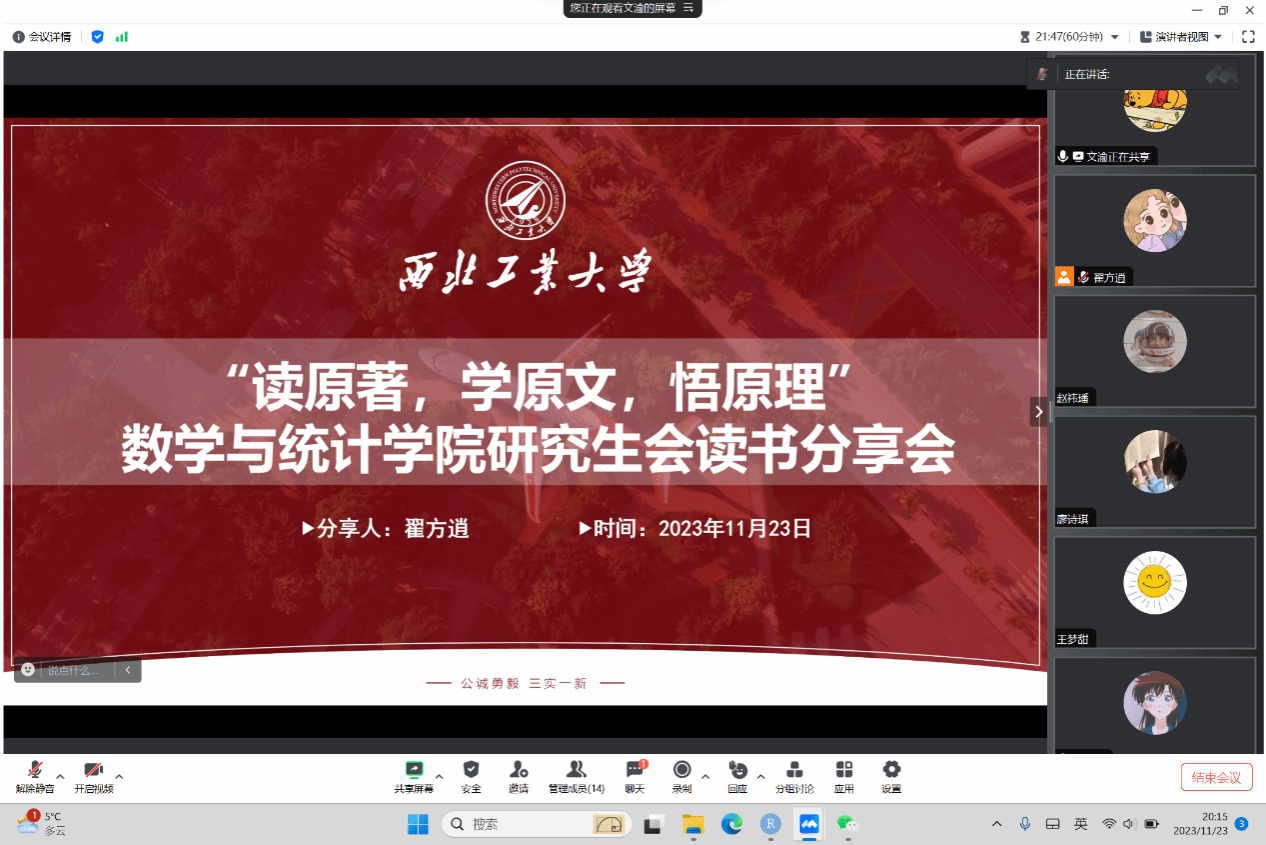 在这个充满活力和挑战的季节,小宝寻花 研究生会深入开展了一系列“读原著、学原文、悟原理”读书分享活动。这次旅程不仅是知识的拓展,更是思想的碰撞,更让同学们深入领会习近平新时代中国特色社会主义思想的基本精神、内容和要求。这是一次真正意义上的学习之旅,一场为武装头脑、指导实践、推动工作而努力的过程。
