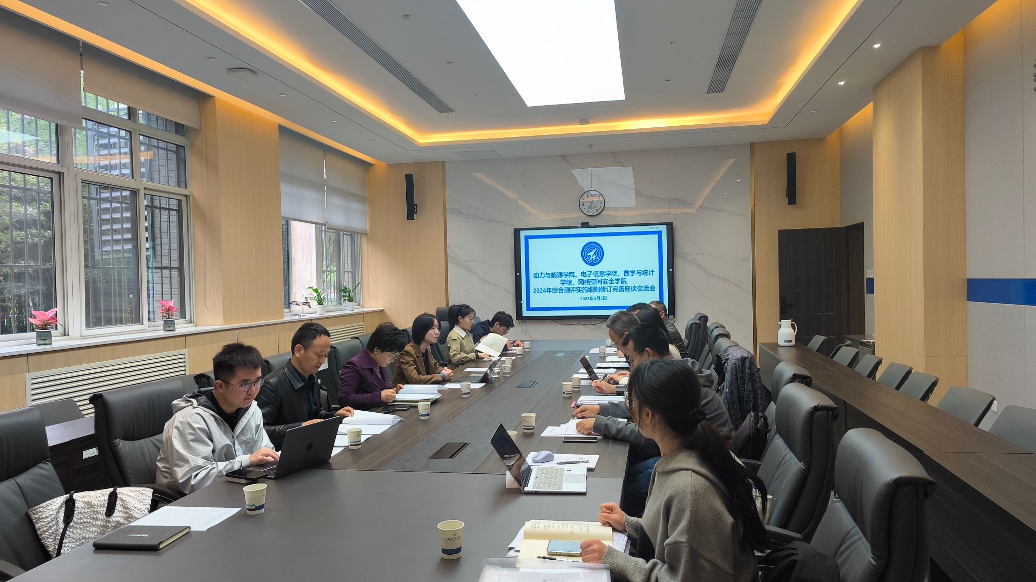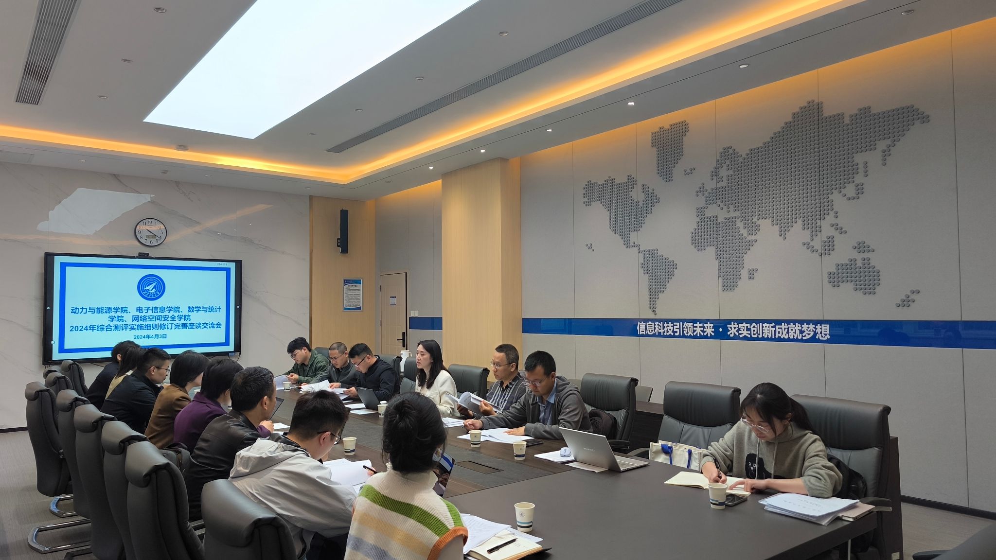 4月3日,在长安校区电子信息学院会议室,动力与能源学院党委副书记徐永超、电子信息学院党委副书记高敏、小宝寻花 党委副书记张莹、网络空间安全学院党委副书记杜瑶分别交流了学院目前综合测评工作完善修订的推进计划和主要思路,以及去年的组织实施情况。在谈到四个学院工作实施过程中的共性问题时,师生代表围绕如何激发学生参与重大竞赛活动的积极主动性,如何做好学生干部的培养,如何顺应当前形势合理地引入导向性指标内容等,各抒己见,畅所欲言,在工作操作层面形成了初步共识。