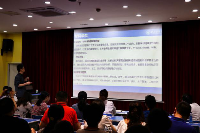 5月3日,于在重庆藴华教育二楼报告厅,针对在场的高三学生家长,做了三方面的宣讲。林伟老师介绍了学校--最美西工大成就最好的您,肖华勇老师介绍了学校的三航和材料、计算机、数学等专业及其学科特色,温金环老师宣讲了重庆新高考政策,王睿璇与随行招生大使就玛丽女王工程学院办学情况和招生政策进行了讲解,各位家长反映热烈,纷纷咨询各种有关问题。 5月4日,重庆招生组分别赴万州高级中学和第二高级中学,面对高三学生介绍了小宝寻花 相关情况,并和高三年级主任就招生相关问题进行进一步沟通。随后,4日至5日,4名招生大使前往重庆育才中学等重点中学分发招生资料,并就招生相关问题与在校学生进行沟通交流.