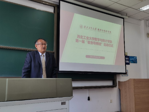 会议第三项,导师团代表发言。2021级学生辅导员王刚表示非常高兴能够参与到同学们的成长中,自己会努力帮助同学们培养良好的品质和能力,也鼓励同学们积极参与各类文艺、体育、社会实践等活动,提升自己的综合素质。随后,教师代表王力工教授结合自己作为老师和家长的经验,提醒同学们正确对待大学和中学的学习区别,建议同学们在平时的学习中要做好过渡,要注重专业课尤其是数学分析、高等代数等基础课程的学习,一定要扎扎实实的做好课前、课中和课后的学习与练习,要做好时间管理,充分利用碎片化时间静心学习。同时,王力工也讲到宿舍氛围的重要性,希望同学们能够养成良好的生活习惯。