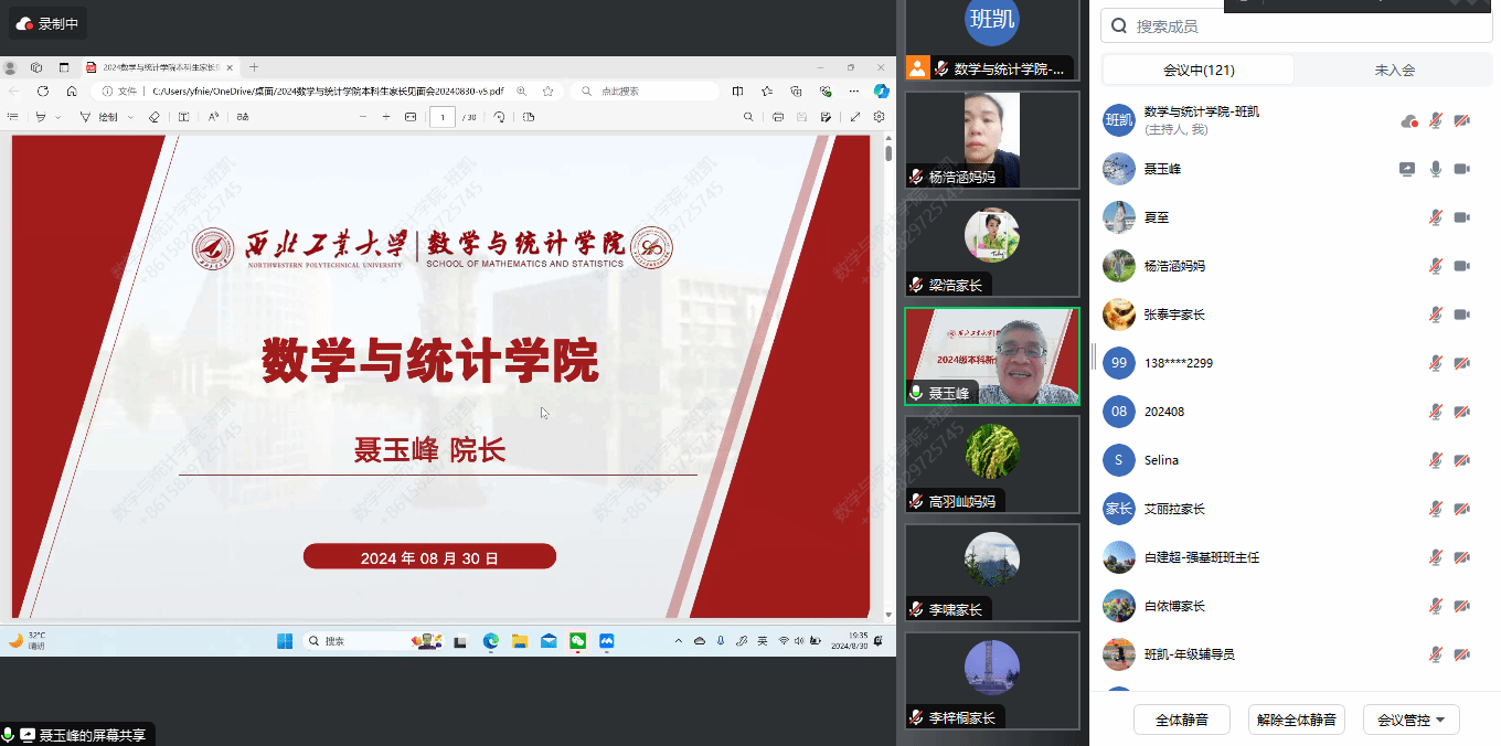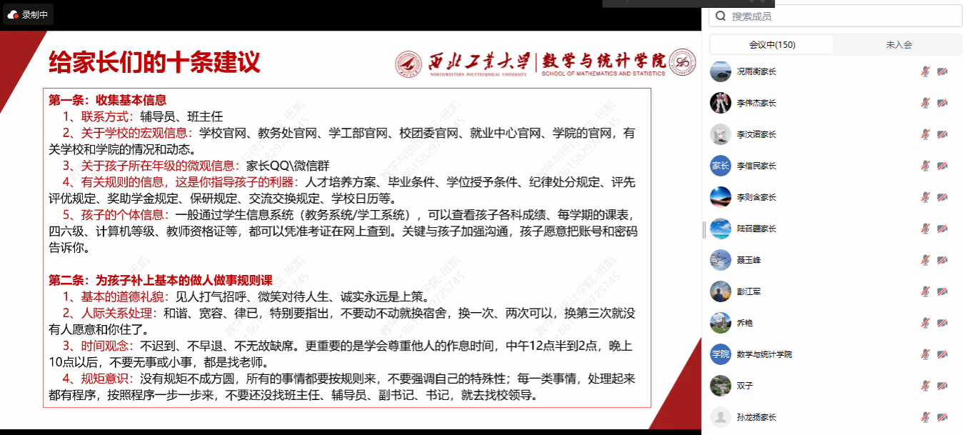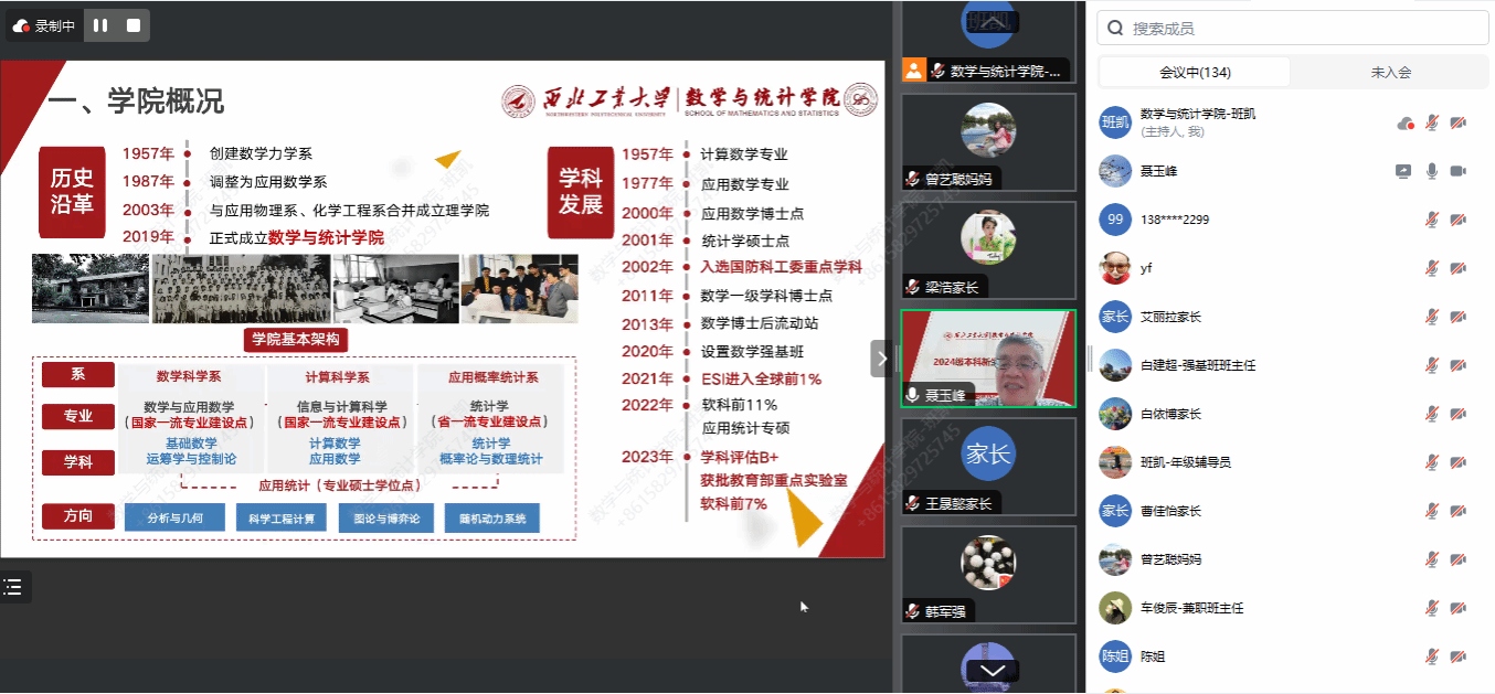8月30日,学院领导班子成员与全体新生家长云端相聚。在这场别开生面的新生家长见面会上,学院整体情况介绍、本科人才培养工作亮点及成绩、家校联动合力育人等内容备受家长们的关注。院长聂玉峰、党委书记王莉、副院长郭千桥围绕主题依次发言,不仅进一步加深了新生家长们对学校、学院的印象和认同感,而且对把孩子交给西工大培养成才表示倍感放心。