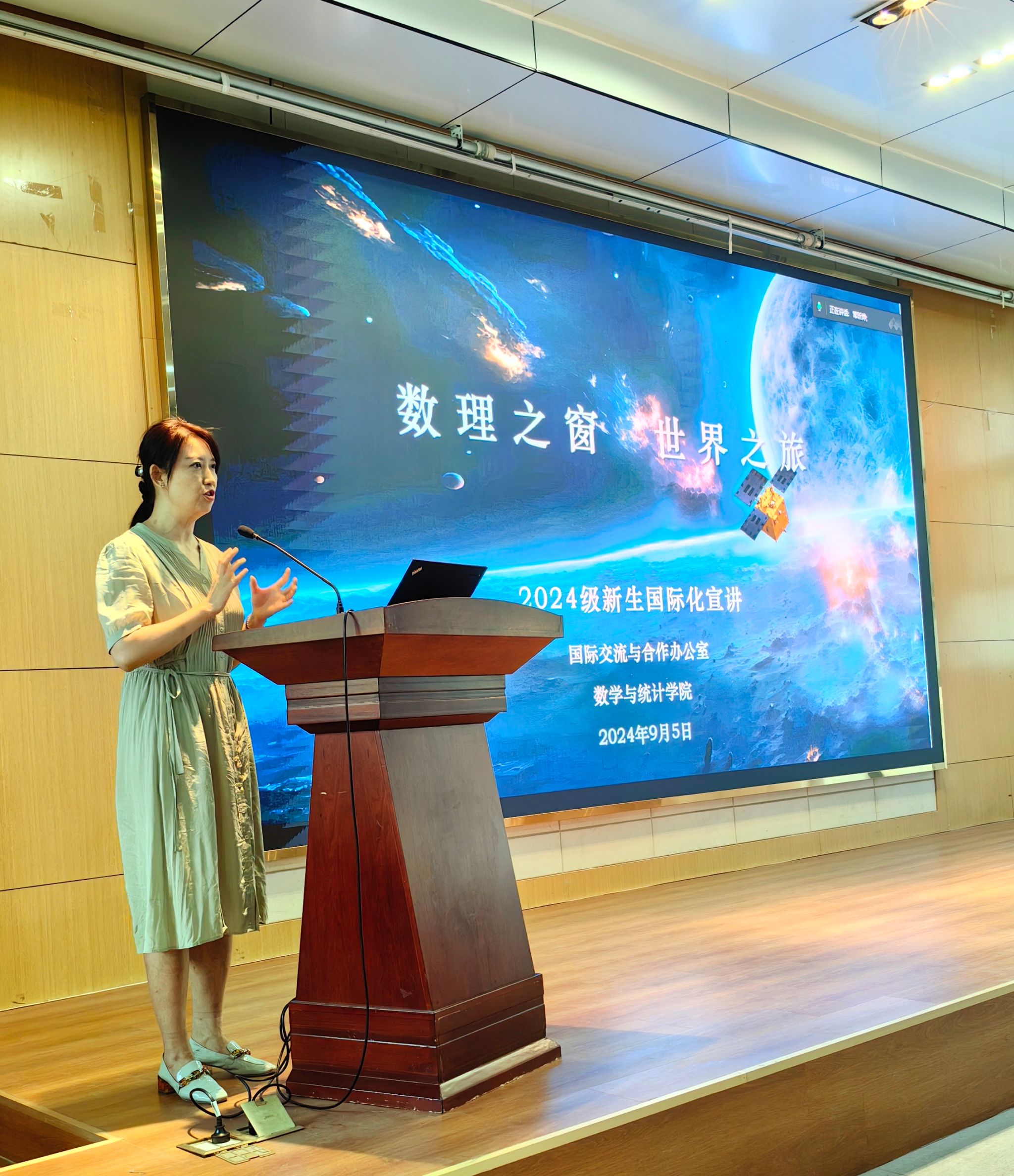 9月5日,副院长都琳、学院国际化工作办公室主任肖曼玉等为全体新生带来了《数理之窗世界之旅》讲座,并就学院近年来国际化工作取得的成绩,学院暑期夏令营项目开展情况等做了详细介绍。期间,四名本院高年级学长学姐也做了经验交流分享,为新生们今后国际化视野的不断开拓奠定了坚实的基础。
