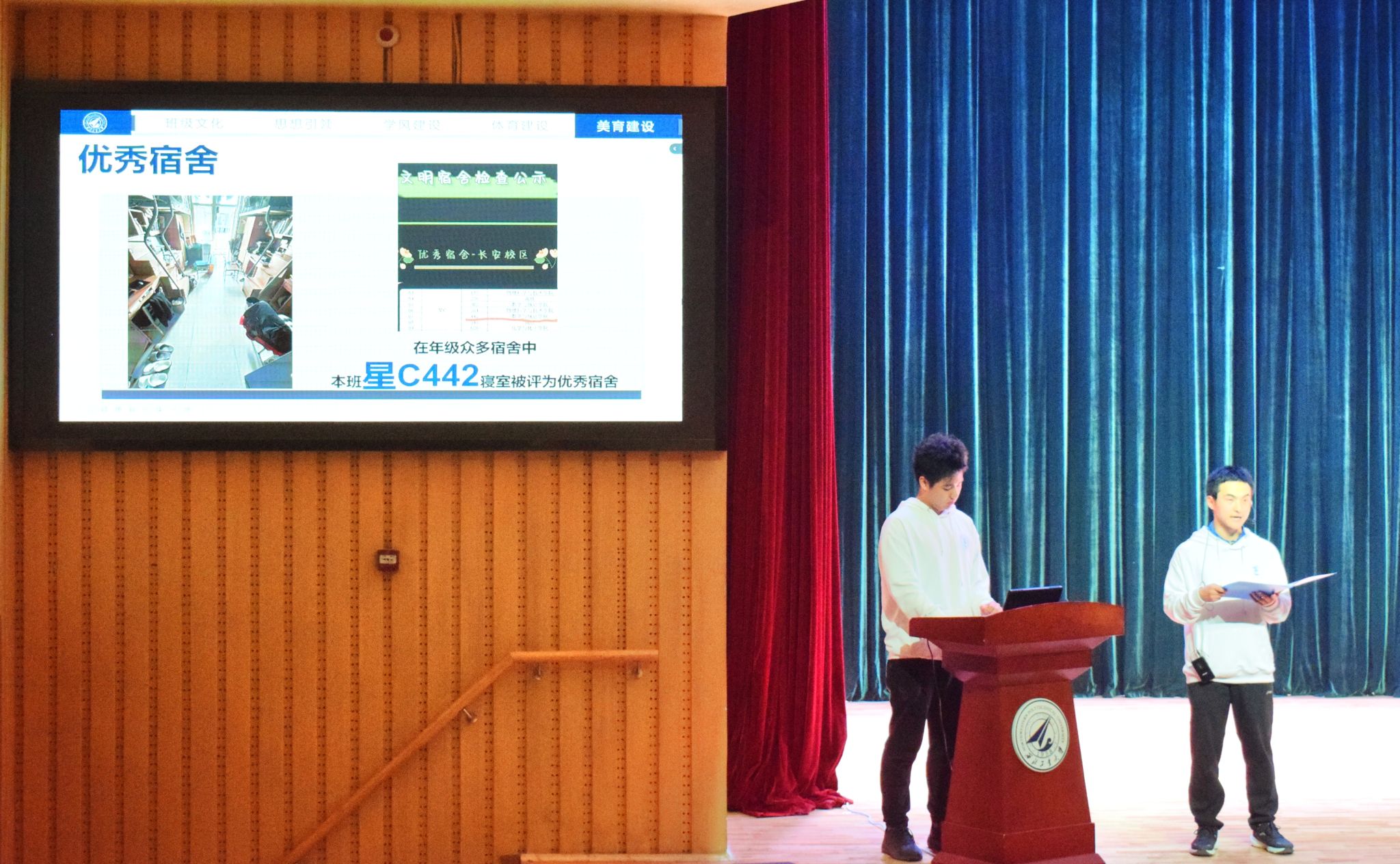 DL072403班从建设有组织、有文化、有情谊、有学风、有作为的班级等五个方面进行了汇报,生动诠释了班级特色与精神风貌。全班同学合唱歌曲《少年》抒发了同学们对梦想的热爱与追求,对初心不改的坚守。