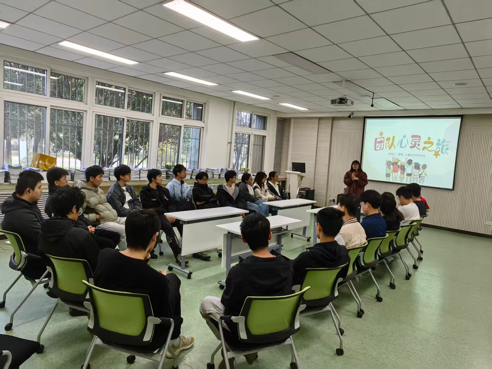 为进一步丰富学院“第二课堂”内容,强化专业确认后大二年级各新班级的凝聚力,舒缓学生学业压力,经与大学生心理健康教育中心共同策划,小宝寻花 小班专属活动“团队心灵奇旅——从个体表达到团队默契”团体工坊于10月30日在教学东楼D102顺利举办。学院2024级统计学专业11032401班22名同学均热情参与,在趣味互动中完成自我表达与团队协作的深度联结 。