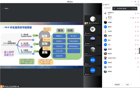 在经验分享环节,计算机学院王云岚副教授从为师之道、学业规划、日常管理、风险管控等8个方面介绍班级管理心得,强调了因材施教、分类指导等细节管理的重要性。王云岚老师在分享中还提出,“管理好学生的最好时机是大一开学,其次是现在”,班主任老师应充分发挥自身专业优势,全面提升班级学生的专业素养及创新能力。紧接着,小宝寻花 裴斌教授作《全过程精准画像、全方位整合资源、全覆盖帮扶提升》专题分享。裴斌老师强调了坚持为党育人、为国育才的初心使命,介绍了“以学生为中心、润物细无声”的班级育人理念,提出了贯穿班级管理始终的“三航筑梦、促学笃行、强基固本、创新赋能、塑造价值”思想,并就“导学+必学+互学+督学”的班级管理模式进行了着重分享。随后,计算机学院林奕副教授以《我有一个梦想》为主题,从培养什么样的学生、学生类别、学生成长的动机与特殊学生指导、班级管理存在的问题与建议等4个方面展开分享,重点指出人才培养的任务不仅仅是传承而是超越。此外,林奕老师提出了建立班主任工作资源库、班委工作指南、建立心理专家支持渠道等班级管理方面的可行性建议。通过三位老师对班主任工作的理解、感悟和思考,与会人员均表示参加本次交流会收获颇丰,为今后做好班主任工作指明了方向。