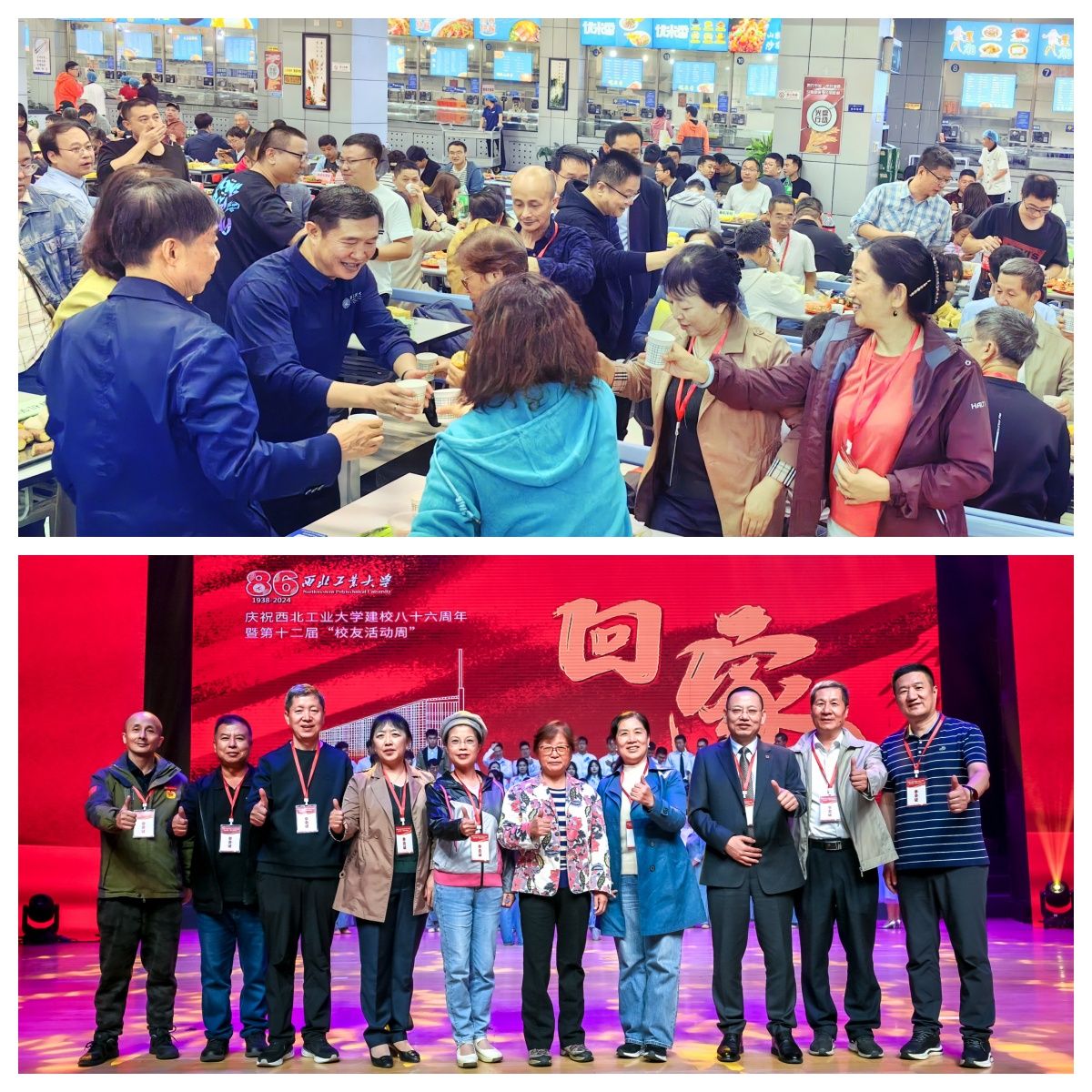 当天早上,在校友会的精心部署安排下,学院1984级等五届返校校友们随同学院志愿者“重走校园路”。友谊、长安两校区“公”“诚”“勇”“毅”四大标志性建筑,知名“网红”地三航博物馆,“为国铸剑”的何尊广场,“亚洲最大”水上图书馆等地,处处留下校友们意气风发的身影。“往日重温”毕业午餐、校友联欢会又持续将“回家”气氛推到高潮,温馨、舒适、共情……欢歌笑语响彻工大校园。