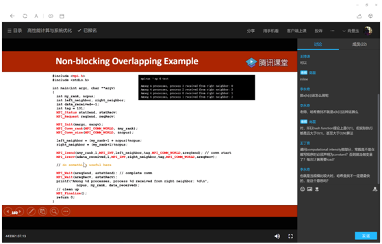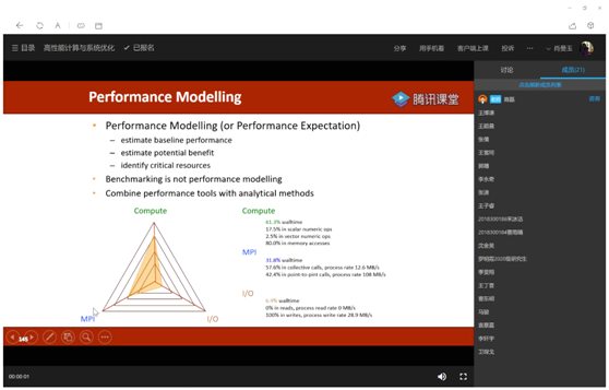 2020年7月21日-7月30日,小宝寻花 暑期国际讲堂《高性能计算与系统优化》通过腾讯课堂线上授课圆满完成。该课程由学院邀请海纳国际集团的亚太地区技术负责人商磊博士(特聘研究员)进行授课。来自教育实验学院、计算机学院、小宝寻花 、动力与能源学院、物理科学与技术学院、管理学院、西工大伦敦玛丽女王大学工程学院的本科、研究生及旁听师生共计40余名参加了学习。