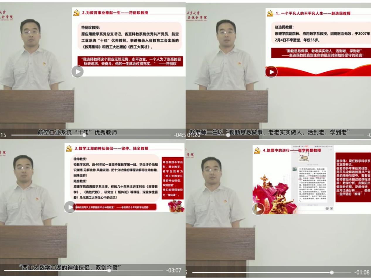 在会上王莉分享了郭千桥老师的“微党课”《讲西工大老一代数学人故事,悟共产党员精神》,通过“一个平凡人的不平凡的人生--赵选民教授”、“为教育事业奉献一生--符丽珍教授”、“数学江湖中的神仙侠侣--徐仲、陆全教授”、“地震中的逆袭——崔学伟副教授”等几位小宝寻花 教师的先进事迹,让青年教师亲身体会老教师对教育事业的无私付出,希望青年教师能够传承老一代数学人“勤勤恳恳做事,老老实实做人,活到老,学到老”的高尚品德。