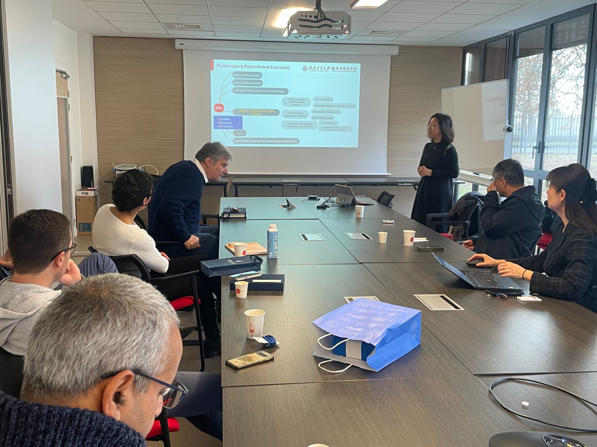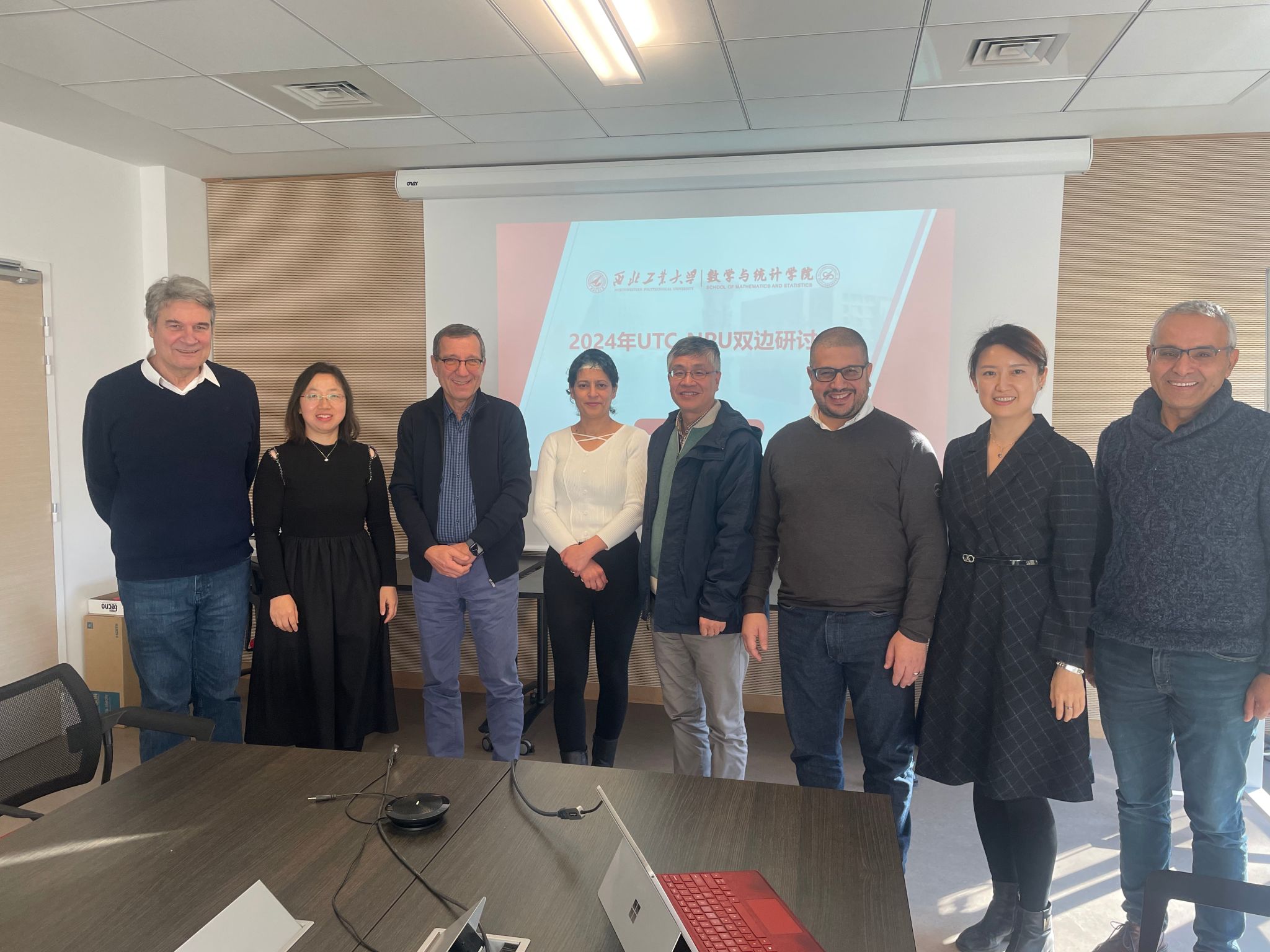 11月30日,经肖曼玉教授前期积极协调沟通,小宝寻花 代表团访问法国贡比涅技术大学数学所,洽谈两院合作事宜。对方出席人员包含数学所主任Salim Bouzebda教授、Faker Ben Belgacem教授、Nikolaos Limnios 教授以及Roverval实验室主任Piotr Breitkopf教授、Ludovic Cauvin教授。