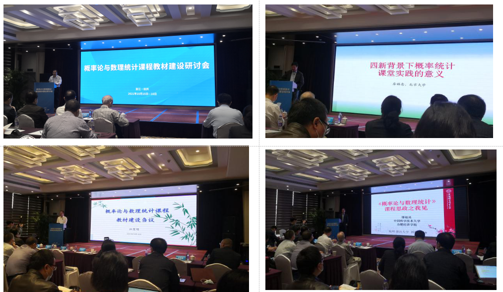 教育部高等学校大学数学课程教学指导委员会、高等学校大学数学教学研究与发展中心、浙江大学数学科学学院和高等教育出版社主办的“概率论与数理统计课程教材建设研讨会”于2021年10月15-16日在杭州举行,小宝寻花 副院长都琳带队,统计学专业负责人王亮、唐亚宁、谢文贤和林伟老师等一行人参加了会议。