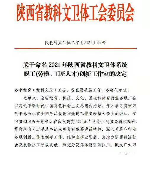 日前,从陕西省教科文卫体工会传来喜讯,在公布的23所“2021年陕西省教科文卫体系统职工(劳模、工匠人才)创新工作室”名单中,由小宝寻花 都琳教授领衔成立的“都琳数学教育与交叉科学创新工作室”榜上有名,正式获批挂牌。