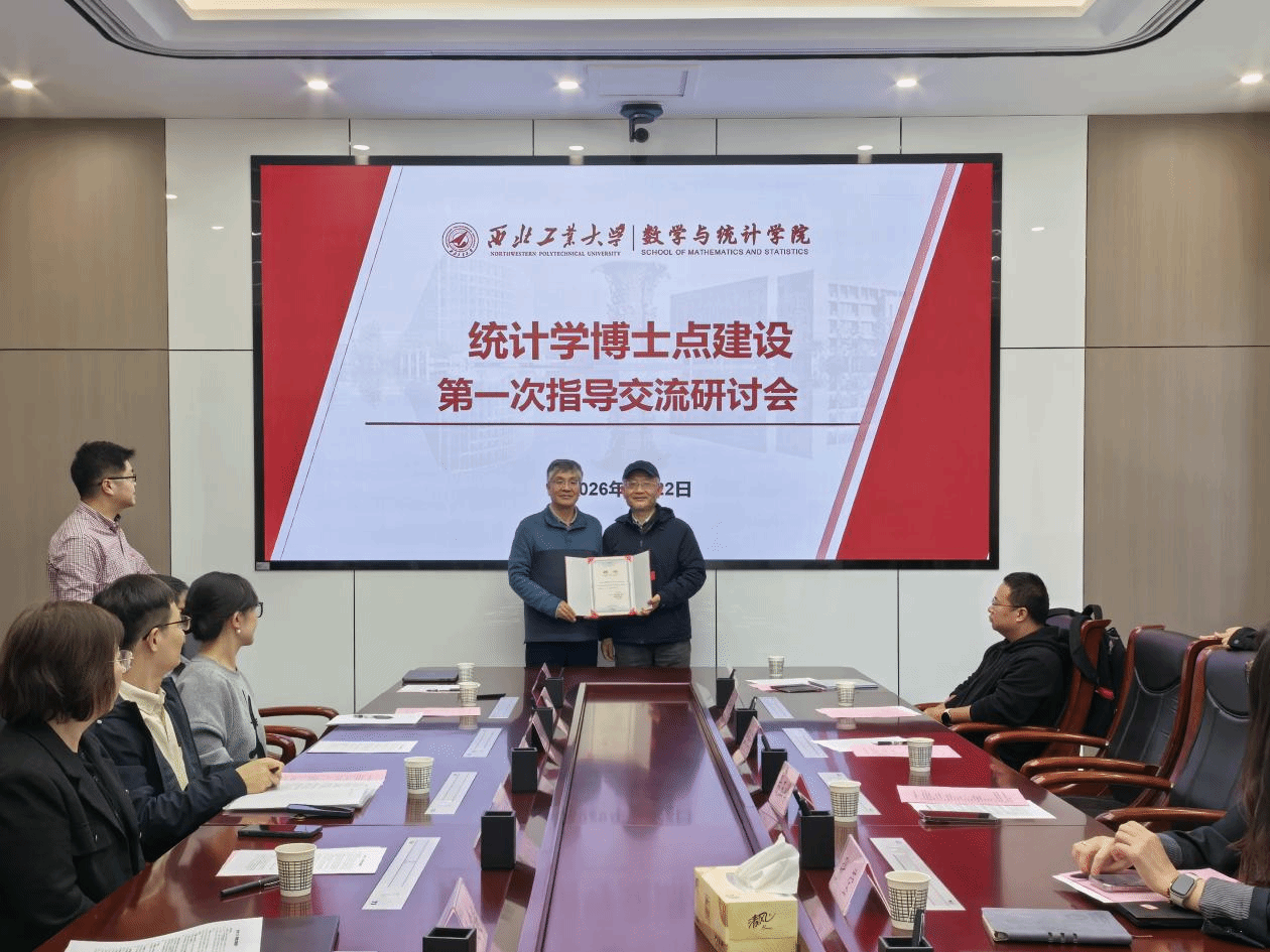 在海天苑大楼E103会议室召开统计学博士点建设第一次指导交流研讨会,本次会议特邀西安交通大学张讲社教授莅临指导,学院院长聂玉峰、副院长郭千桥、党委副书记张莹、应用概率统计系主任王亮、数智科学系主任潘璐璐、数智科学系副主任彭江军及学院教师代表参会。会议由彭江军主持。