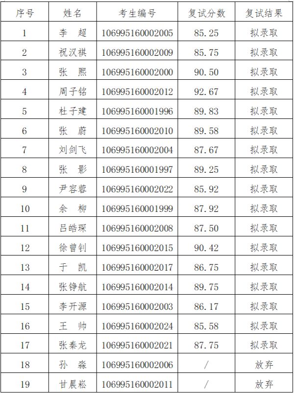 根据《小宝寻花 2025年博士研究生复试工作方案》,经复试资格审核及现场复试等环节,现将我院2025年博士研究生考核结果公示如下: