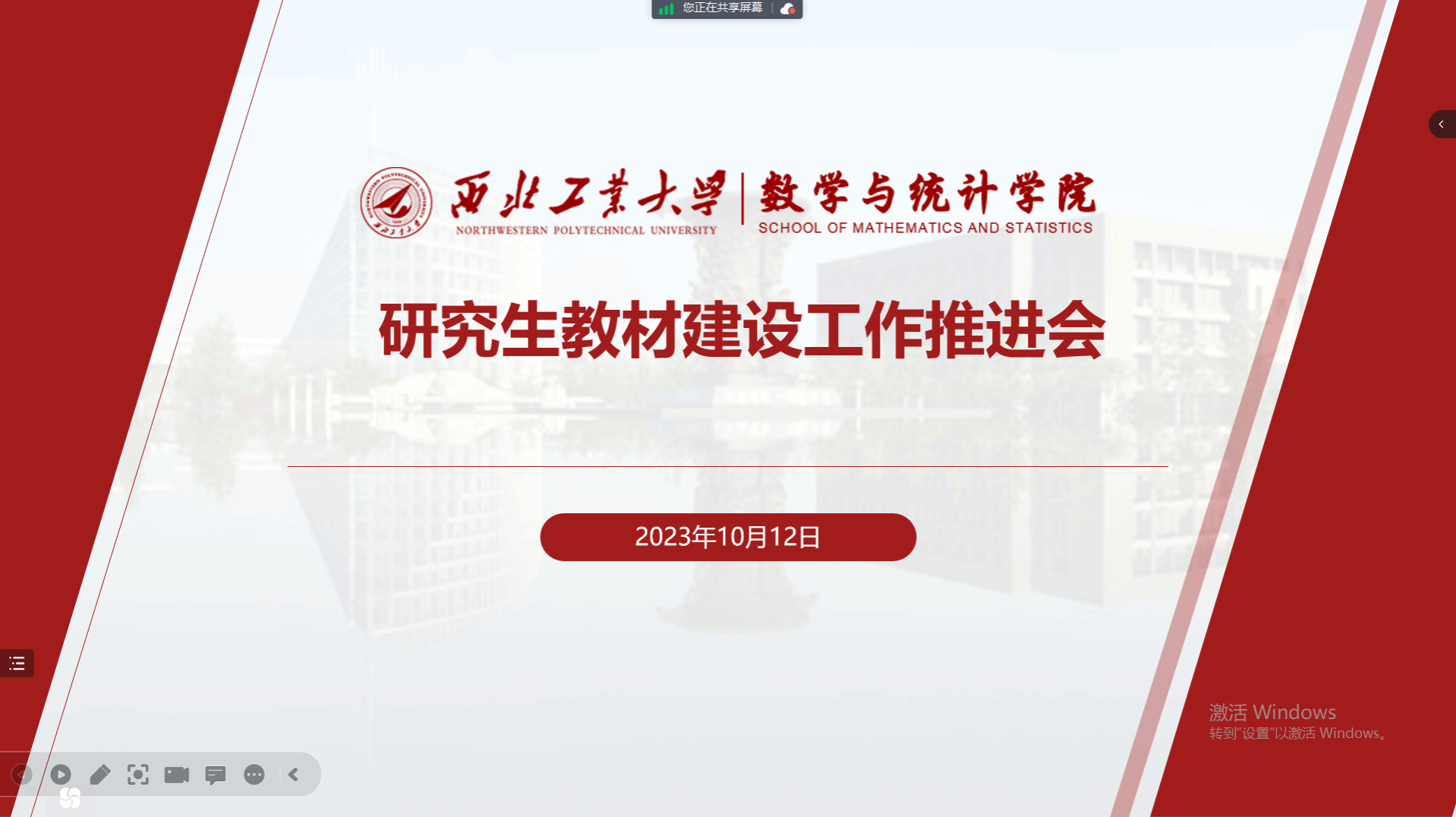 为推动陕西省理工类高校工科硕士研究生数学基础课程教材共建共享,加快小宝寻花 校级立项教材、基础前沿课教材建设进程,提升教材建设质量,2023年10月12日下午,我院通过腾讯会议线上组织研究生教材建设工作推进会。院长聂玉峰、副院长徐根玖、研究生公共课课程负责人、“十四五”校级规划教材建设项目负责人、基础前沿课程负责人等20余名教师参加会议。推进会由徐根玖主持。