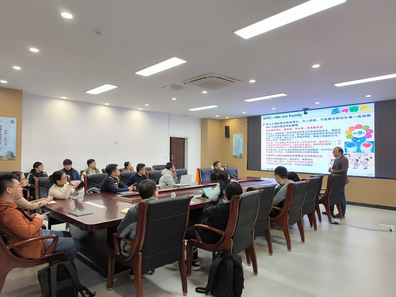 顾军渭教授结合自身科研经历与育人经验,用生动的语言和丰富的案例,从如何树立正确的职业教师观念、如何夯实导师职责、如何提升履职能力等多个方面对和谐师生关系的构建进行了深入的讲解。他在分享中指出,导师作为第一责任人,要坚守立德树人初心,要以身作则、因材施教,要“用心、用情;知己、知彼;严谨、严格”地做好研究生成长成才的领路人和同行者。