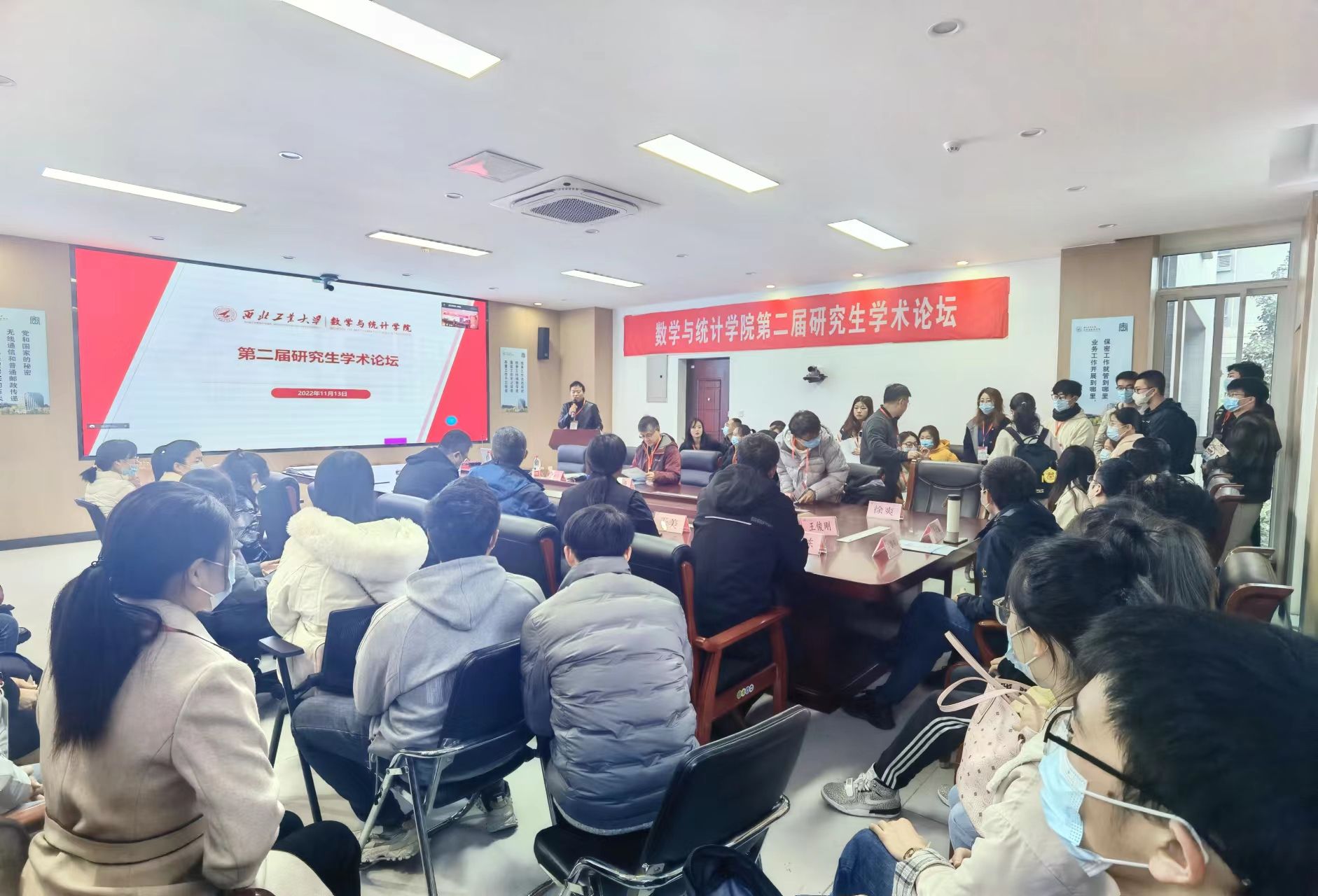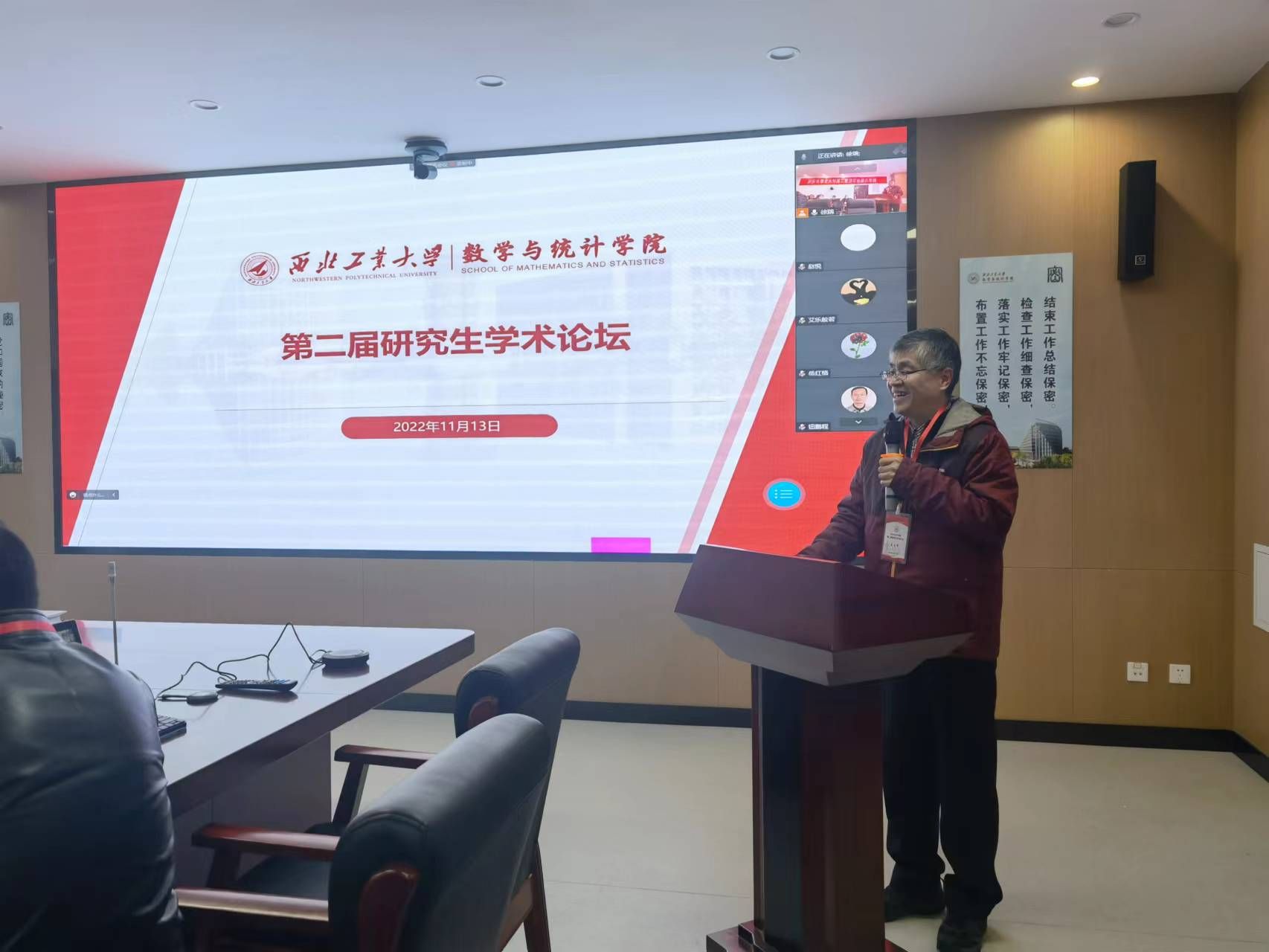为进一步落实数学学科“双一流”建设,深入贯彻落实学校《一流研究生人才培养行动计划》,营造研究生学术创新氛围,2022年11月13日,小宝寻花 在小宝寻花 长安校区召开第二届研究生学术论坛。根据疫情防控相关要求,本次论坛采取分设理学楼A201、A214、A315三个会场,线上线下结合的方式举行。党委书记王莉、院长聂玉峰、副院长徐根玖、副院长都琳以及二级学科负责人、青年教师代表、各年级研究生、其他高校师生等共230余人分别通过线上线下的形式参加了本次论坛,论坛由副院长徐根玖主持。