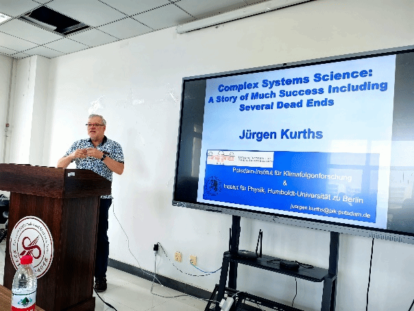 2023年6月8日上午10:30,应小宝寻花 都琳教授的邀请,德国洪堡大学Jürgen Kurths教授在启翔楼357做了题为《Complex Systems Science: A story of much success including several failures》的学术报告。复杂系统动力学与控制工信部重点实验室都琳教授、张红慧副教授、张硕副教授、范艾利副教授等多位老师以及40余名硕士、博士研究生参加了此次报告会。报告会由都琳教授主持。