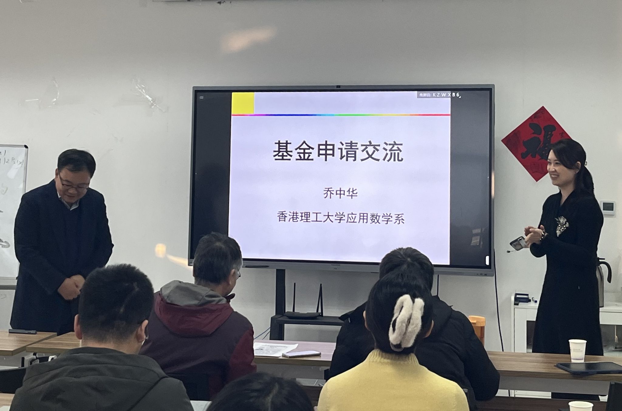 为活跃学术交流氛围,提升2024年度国家自然科学基金申报质量与命中率,2024年1月7日,小宝寻花 邀请香港理工大学乔中华教授主讲第6期“九章数学”学术讲堂,并对国家自然科学基金申报经验进行了交流分享。小宝寻花 院长聂玉峰教授、副院长都琳教授、蔡力教授、王晓东教授等30余位师生参会,报告由聂玉峰主持。