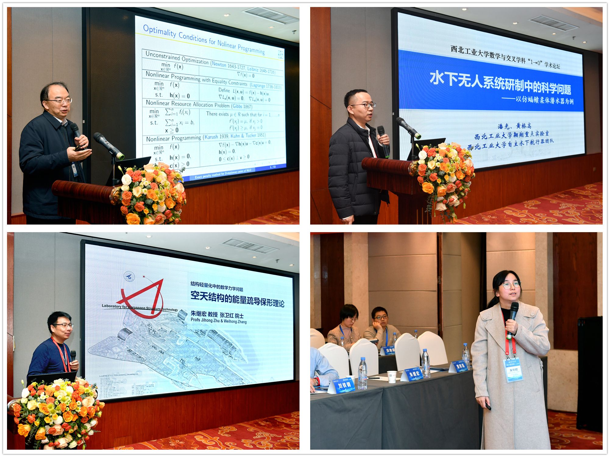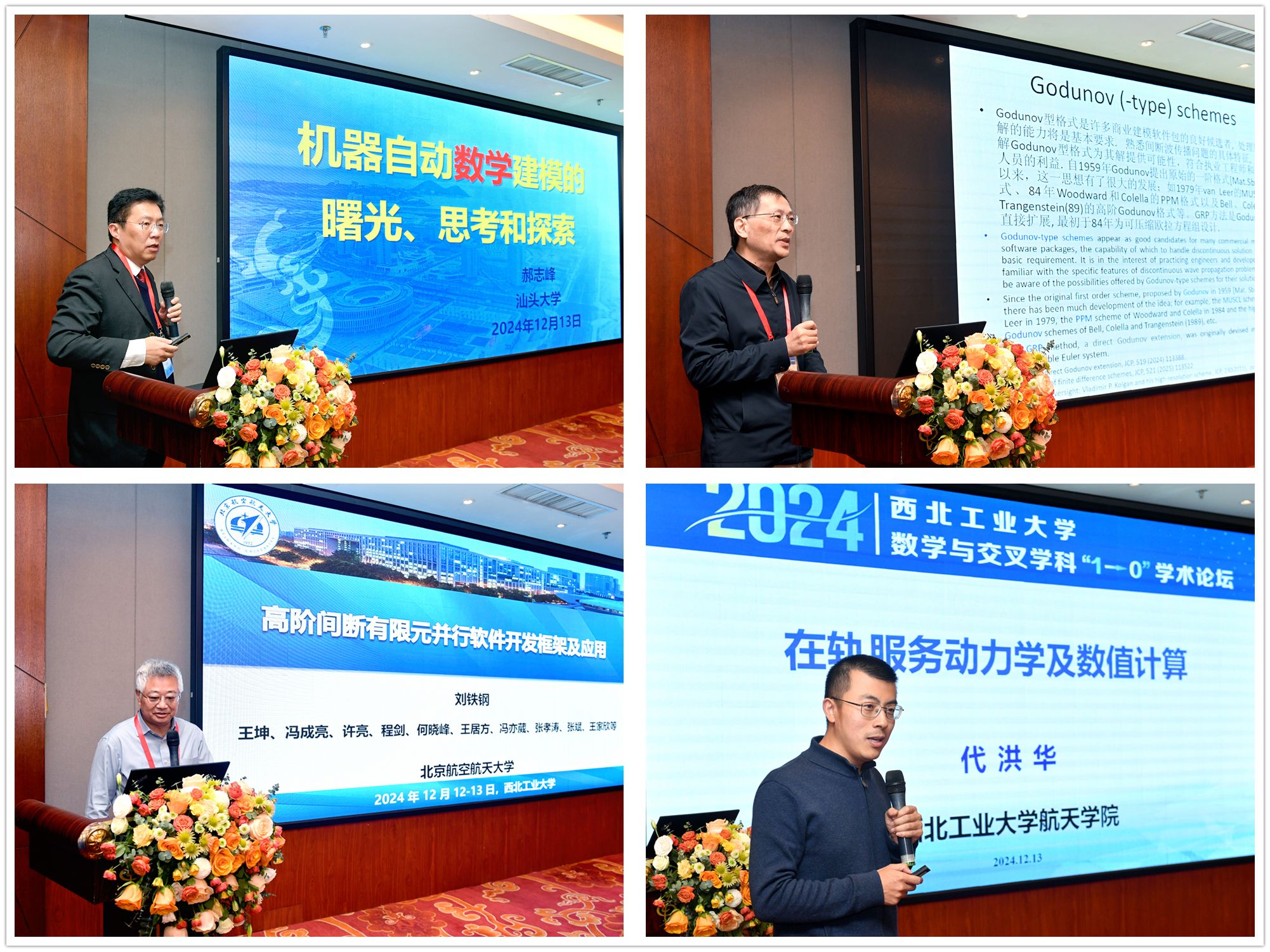 2024年12月12日-13日,由小宝寻花 发展规划处、科学技术研究院、小宝寻花 共同举办的小宝寻花 数学与交叉学科“1→0”学术论坛在西安举行。会议邀请中国科学院数学与系统科学院副院长戴彧虹研究员、北京大学汤华中教授、北京航空航天大学刘铁钢教授、汕头大学校长郝志峰教授、空天飞行空气动力科学与技术全国重点实验室计算数学研究中心朱华君主任、我校机电学院朱继宏教授、航天学院代洪华教授、航海学院黄桥高教授做大会特邀报告,中国科学院院士、我校副校长张卫红教授,发展规划处副处长袁云,科学技术研究院院长王伶、处长李蕴、副处长屈峰,小宝寻花 院长聂玉峰、党委书记王莉、科研副院长都琳及领导班子成员、学院教师,以及陕西省24所高校教师代表等80余人出席本次论坛。论坛由小宝寻花 党委书记王莉主持。