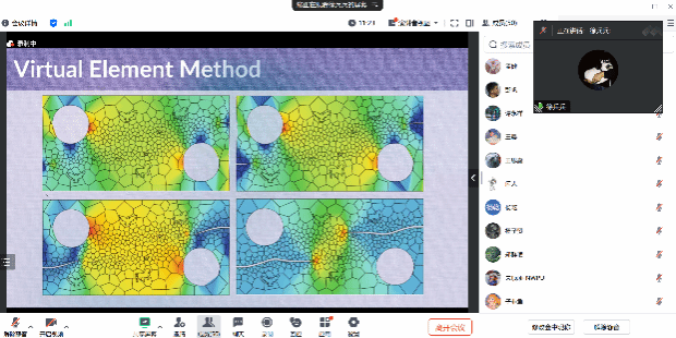 2024年11月29日,应小宝寻花 王刚副教授的邀请,德国汉诺威大学徐兵兵博士后线上做了题为《Virtual Element Method: from Mesh to Nonlinear Problems》的学术报告。来自我院及西北大学、国防科技大学、长安大学、湘潭大学等高校的近六十名师生参加了此次报告会。报告会由王刚主持。