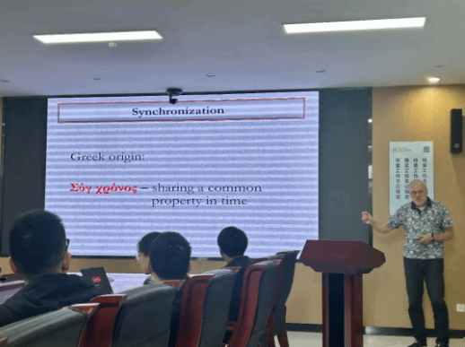 1665年,Christiaan Huygens首次在耦合摆钟上发现了同步,这是非线性科学的开端。Jürgen Kurths首先向大家介绍了一些周期系统中同步的例子,例如时钟、风琴管、萤火虫以及桥梁力学系统。其次讨论了耦合复杂系统中的二次同步现象,他给大家解释了如何在实验数据中识别这种二次同步现象,特别是如何在生理测量中,如脑或心率数据中识别这种现象。再次,Jürgen Kurths将同步概念扩展到时空系统,特别是复杂网络。通过电网和人脑的基本应用展示了这种方法的重要性。最后讨论了一些有待解决的问题。报告会结束后,Jürgen Kurths与在场师生进行了激烈地学术交流,就大家提出的问题进行了耐心解答,并就报告中涉及的一些内容进行了深入讨论探究。