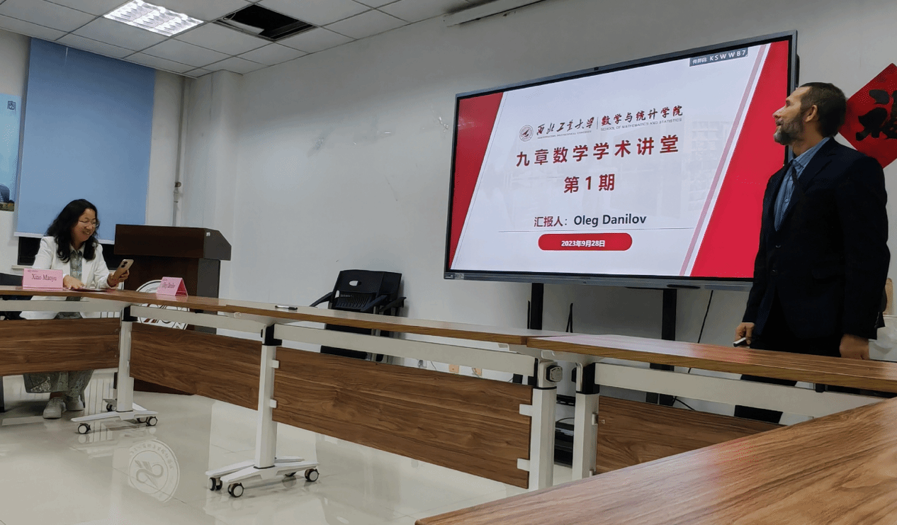 为深入贯彻落实《小宝寻花 科技工作高质量发展行动计划》,切实活跃学院科研交流氛围,提升有组织科研能级,小宝寻花 开展“九章数学系列学术报告”活动。2023年9月28日,第一期“九章数学学术讲堂”在启翔楼357进行,讲堂邀请俄罗斯新西伯利亚国立大学Oleg Danilov教授主讲,我院党委书记王莉、院长聂玉峰、副院长都琳、国际交流与合作办公室主任肖曼玉等20余位教师和学生参会,会议由肖曼玉主持。