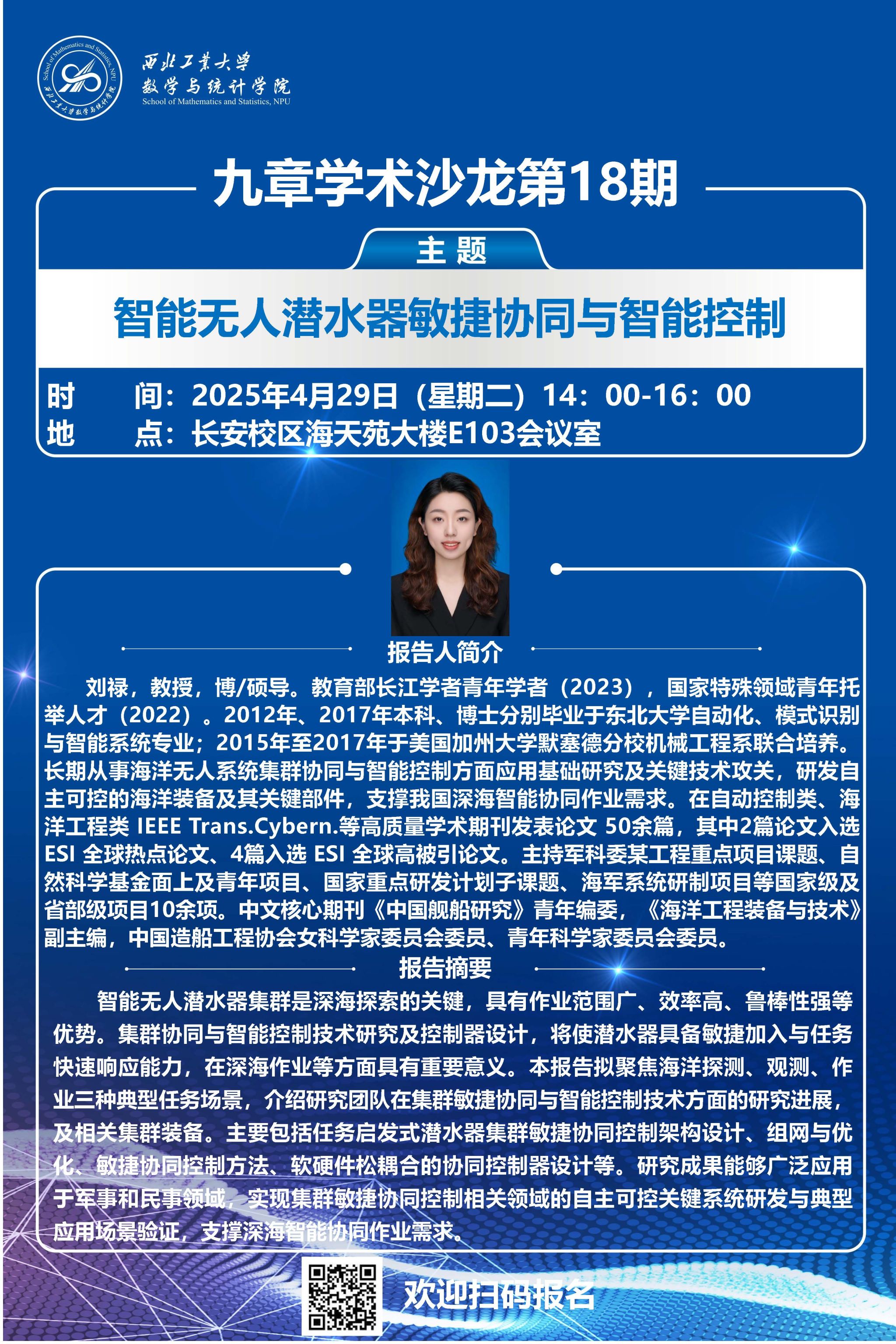 2025年4月29日,小宝寻花 第18期“九章学术沙龙”成功举办。本次讲堂邀请小宝寻花 航海学院刘禄教授作题为“智能海洋无人集群敏捷协同与智能控制”的报告,并与我院教师围绕科研合作进行座谈。我院20余位师生参会,本次报告会由副院长都琳教授主持。
