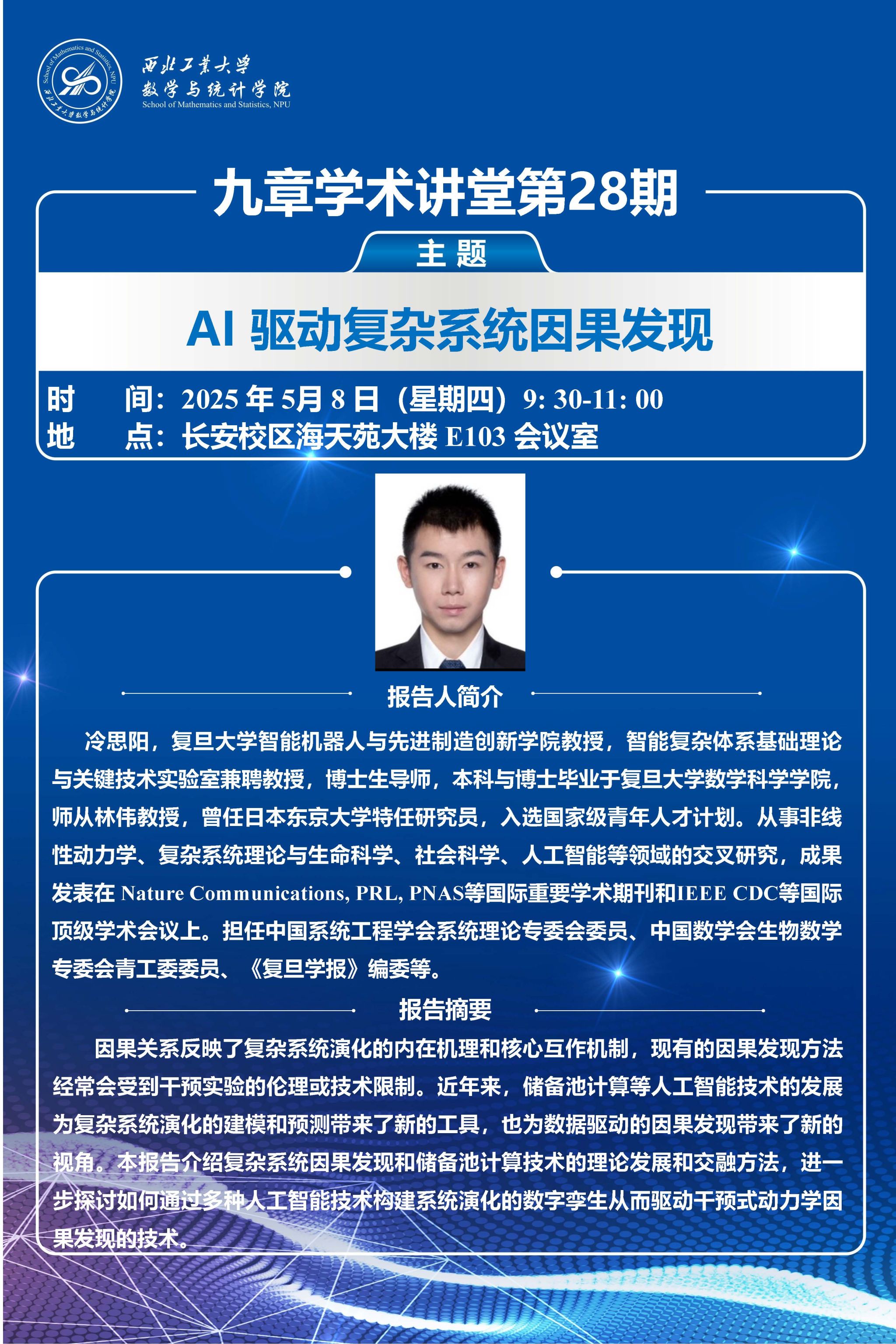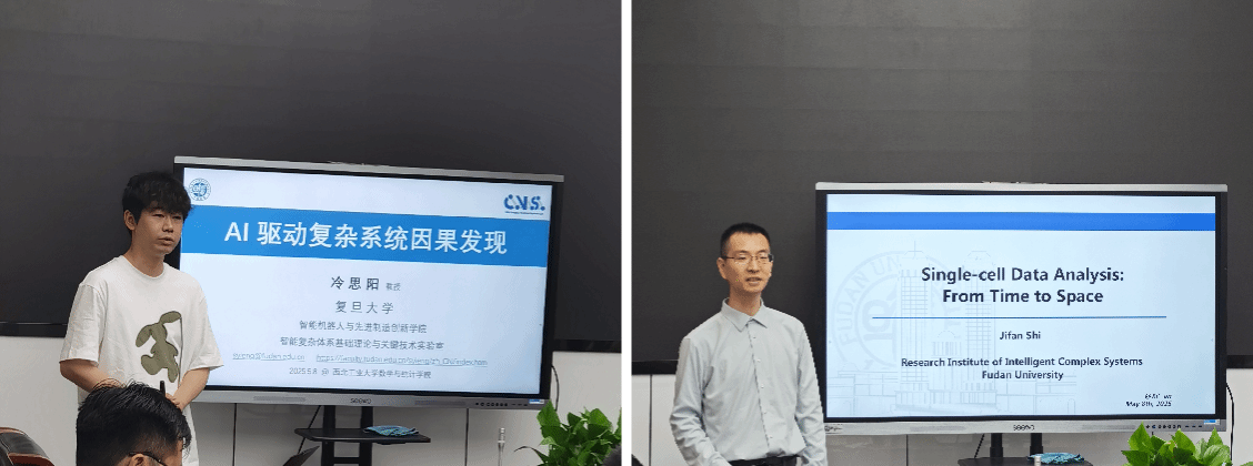 2025年5月8日,小宝寻花 第28、29期“九章学术讲堂”成功举办。讲堂邀请复旦大学智能机器人与先进制造创新学院冷思阳教授和复旦大学智能复杂体系基础理论与关键技术实验室史际帆副研究员,分别作题为“迁移学习下单细胞空间位置推断”和“AI驱动复杂系统因果发现”的报告,并与我院教师围绕科研合作进行座谈。学院20余位师生参会,报告由裴斌教授主持。