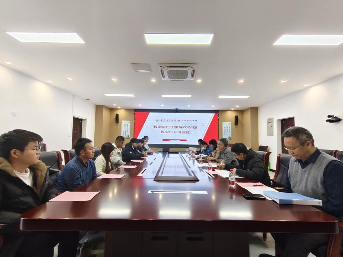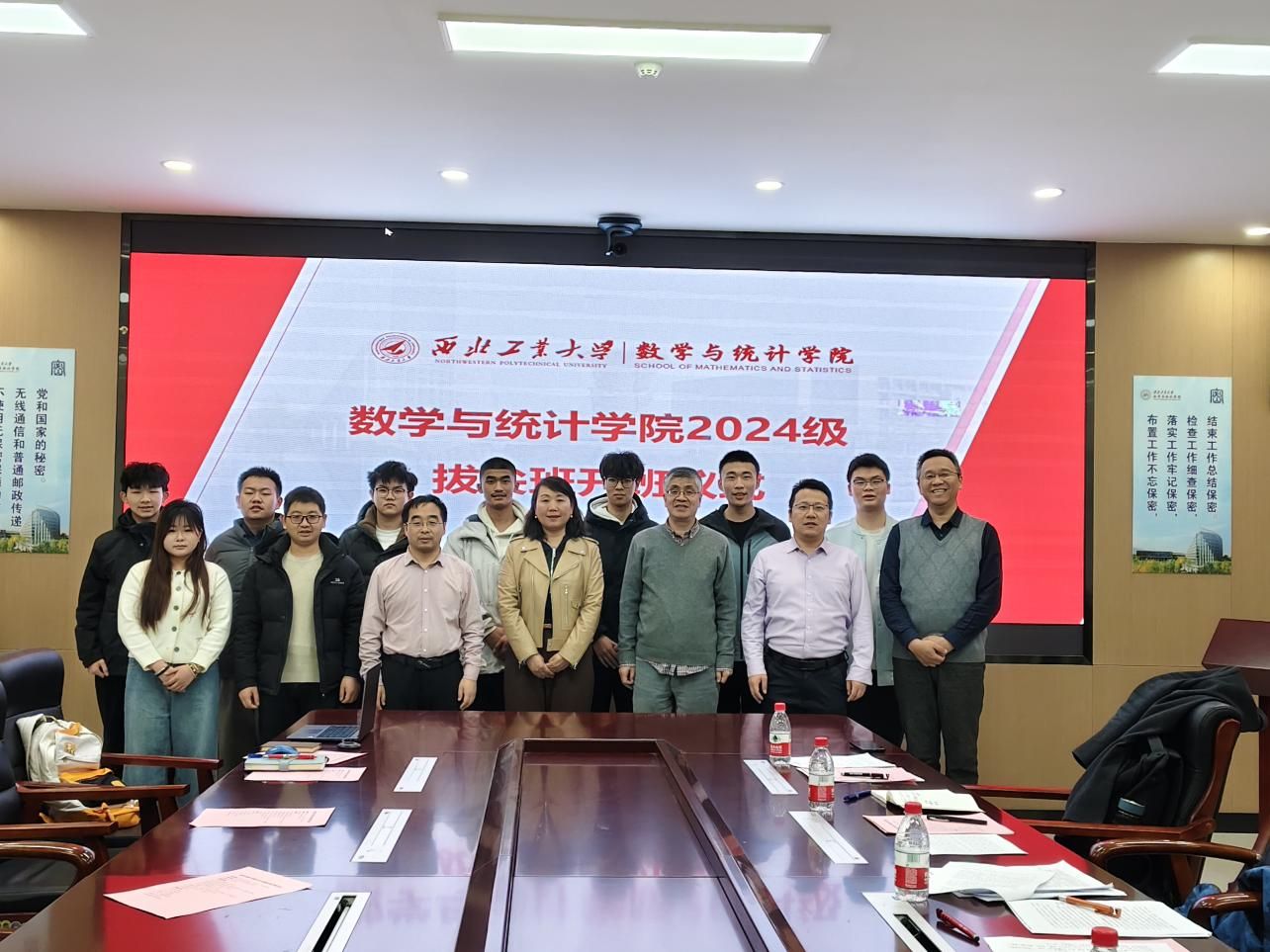 2025年2月26日,小宝寻花 2024级拔尖班开班仪式在长安校区理学院201会议室顺利召开。学院院长聂玉峰、党委书记王莉、副院长郭千桥、院长助理刘晓刚、院长助理兼2024级辅导员班凯、班主任白建超、教学秘书李彦吉及拔尖班8位入选同学参加。仪式由副院长郭千桥主持。