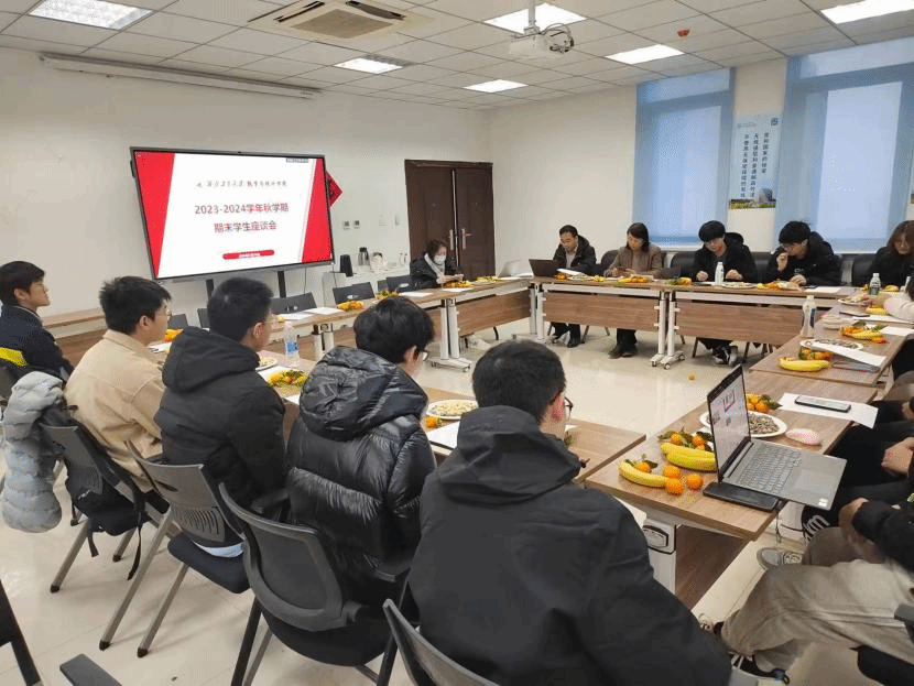 2024年1月16日,小宝寻花 2023-2024学年秋学期期末学生座谈会在启翔楼357会议室举行。小宝寻花 党委书记王莉、教学副院长郭千桥、本科四个年级的学生代表参加了本次会议。