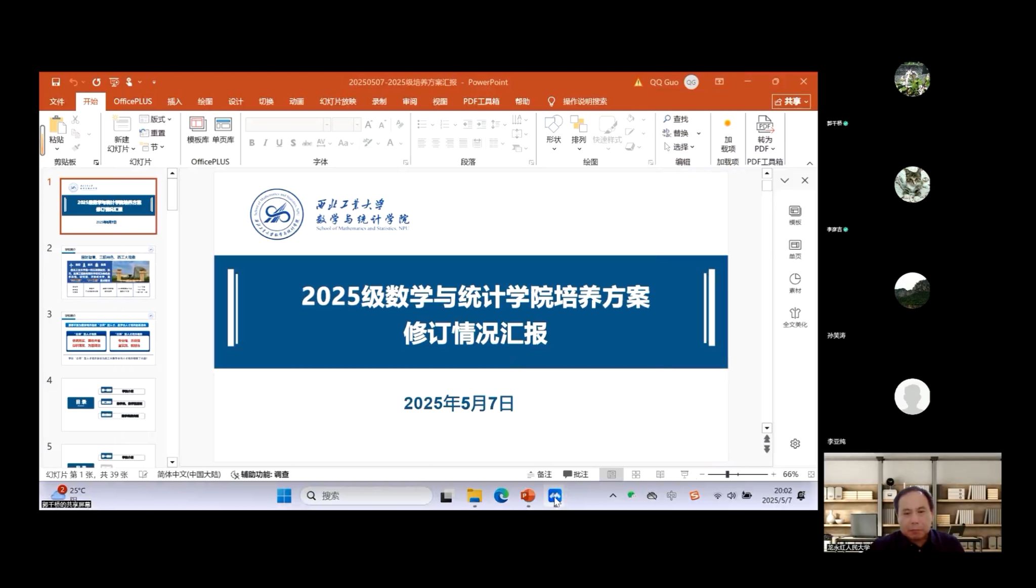 为深化教育教学改革,全面提升本科人才培养质量,推进“总师育人文化”走深走实,小宝寻花 于2025年5月7日晚通过腾讯会议线上召开“2025级本科人才培养方案论证会”。会议特邀教育部高等学校教学指导委员会专家——复旦大学吴泉水教授、北京大学李若教授、中国人民大学龙永红教授、西安电子科技大学刘三阳教授、天津大学孙笑涛教授、北京航空航天大学韩德仁教授及上海交通大学李亚纯教授组成论证专家组,对培养方案进行指导。学院院长聂玉峰、副院长郭千桥、数学科学系主任陆由、计算科学系主任赵俊锋、应用概率统计系主任王亮及教学秘书李彦吉全程参会。会议由郭千桥主持。