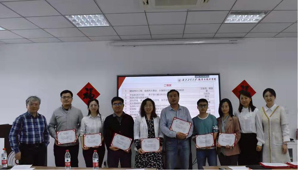 为贯彻落实《一流本科人才培养行动计划》,全面推进课程思政建设,提升全体教师的课程思政意识,充分发掘课程育人功能,小宝寻花 举办首届数学类课程思政教学案例设计大赛。本次大赛由小宝寻花 课程思政教学研究中心主办,共收集数学类课程思政教学案例160余例,经初评、外审和会评三个环节,共评出特等奖5项、一等奖10项和二等奖14项,并于4月8日在启翔楼357进行颁奖典礼。学院党委书记王莉、副院长都琳、教学委员会主任彭国华以及20余位获奖教师出席了此次颁奖典礼,典礼由学院课程思政中心副主任潘璐璐老师主持。