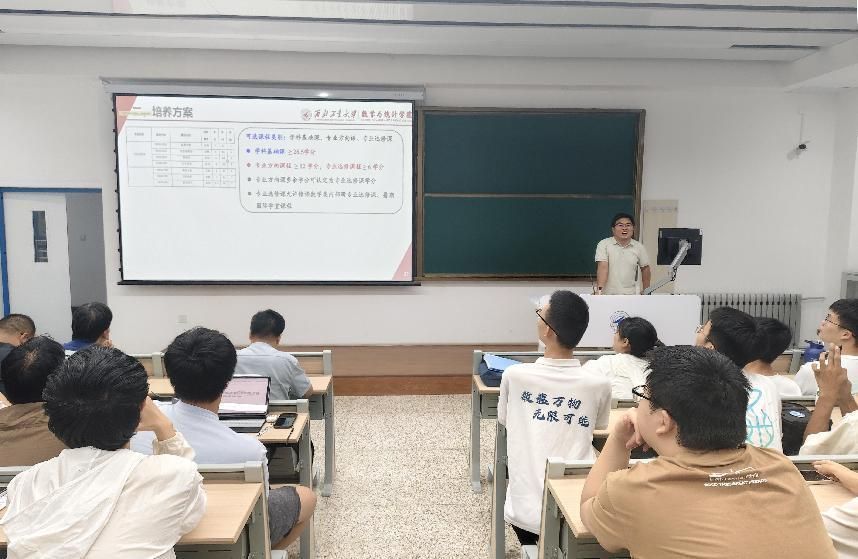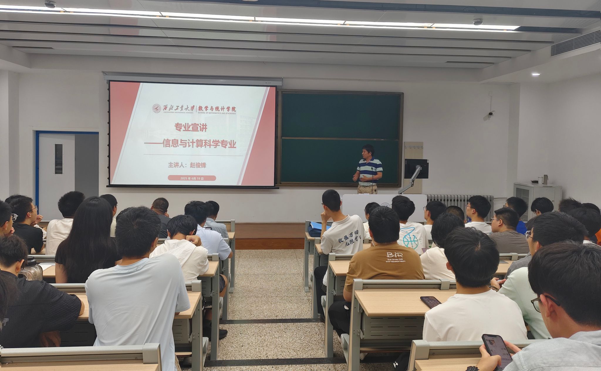 为有效推进“总师育人文化”走深走实,为2024级本科生专业分流答疑解惑,2025年6月19日晚,小宝寻花 在教西B205召开专业宣讲会。副院长郭千桥、院长助理兼2024级辅导员班凯、数学科学系副主任夏健康、计算科学系主任赵俊锋、应用概率统计系主任王亮、教学秘书李彦吉及全体149名2024级本科生参会。会议由郭千桥主持。