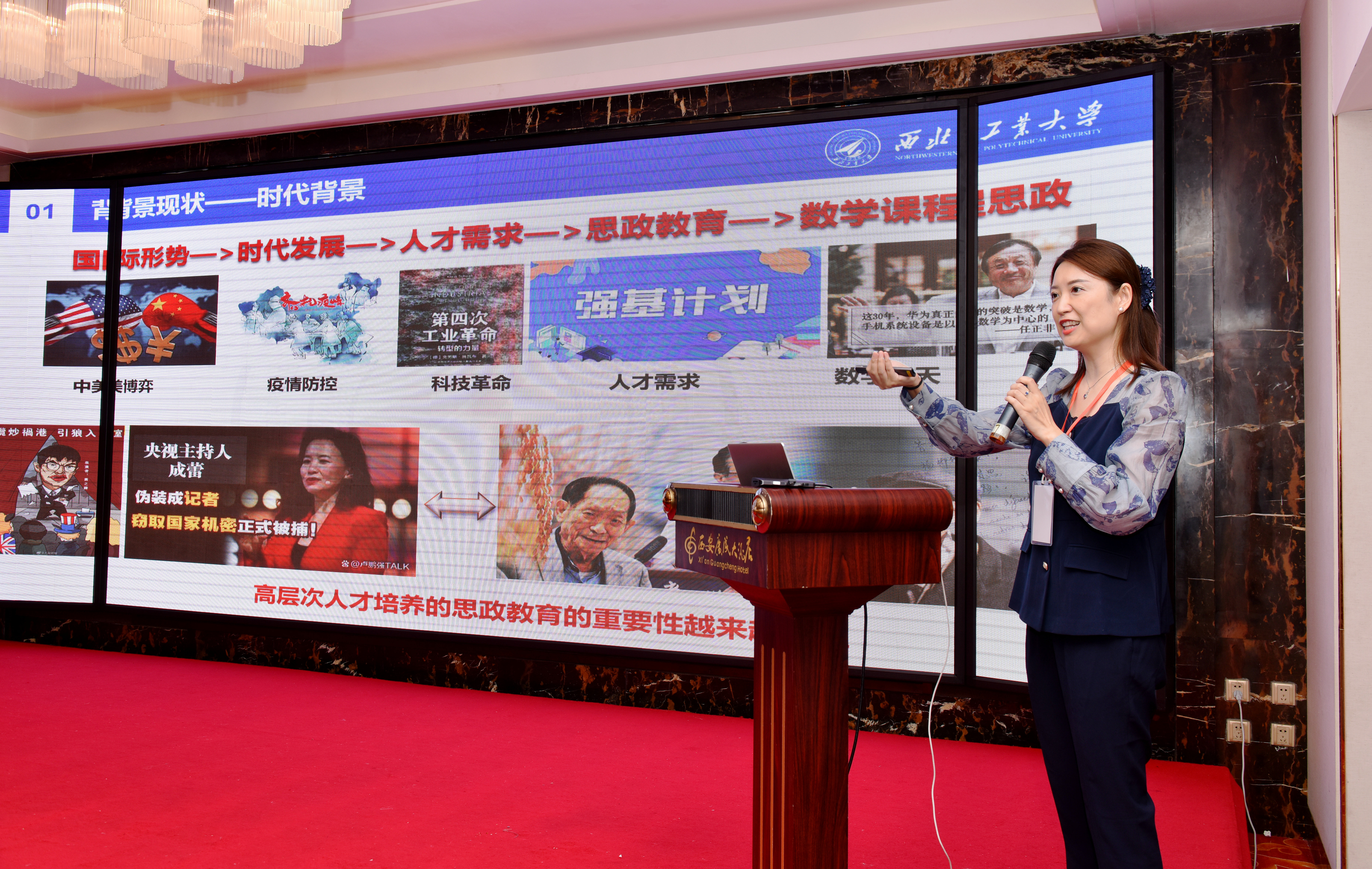会议的特邀专家分享环节由西安交通大学城市学院副校长朱旭教授主持,特别邀请小宝寻花 副院长都琳教授以“肩负时代使命 践行课程育人——《概率论与数理统计》课程思政探索与实践”为题进行分享,特别邀请长安大学杨莹老师以“基于建构主义学习理论的《高等数学(下)》课程教学创新——以‘对弧长的曲线积分’为例”为题的课程教学创新示范交流分享。