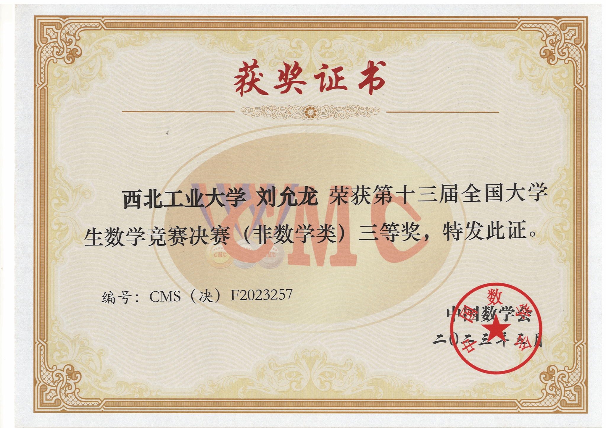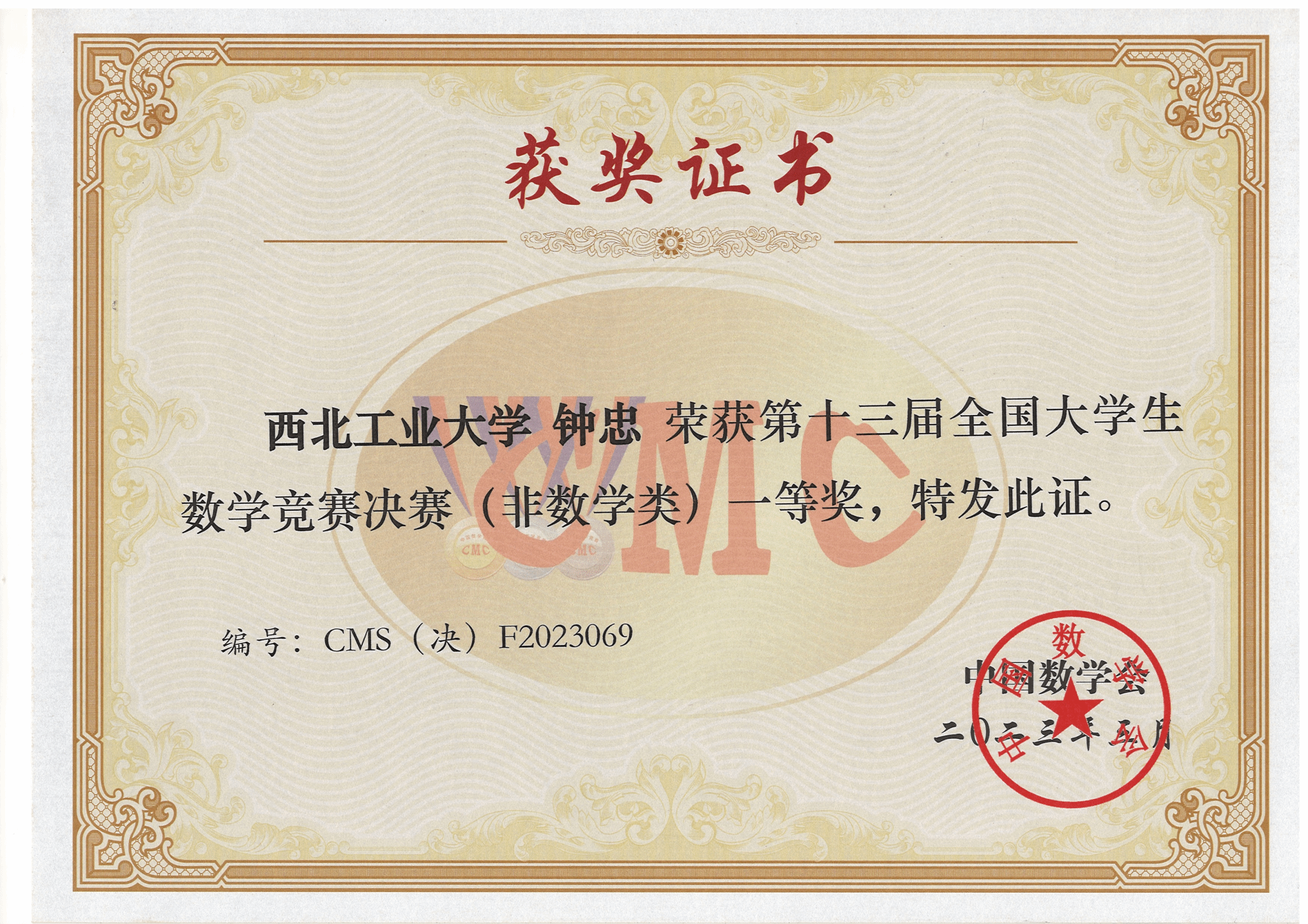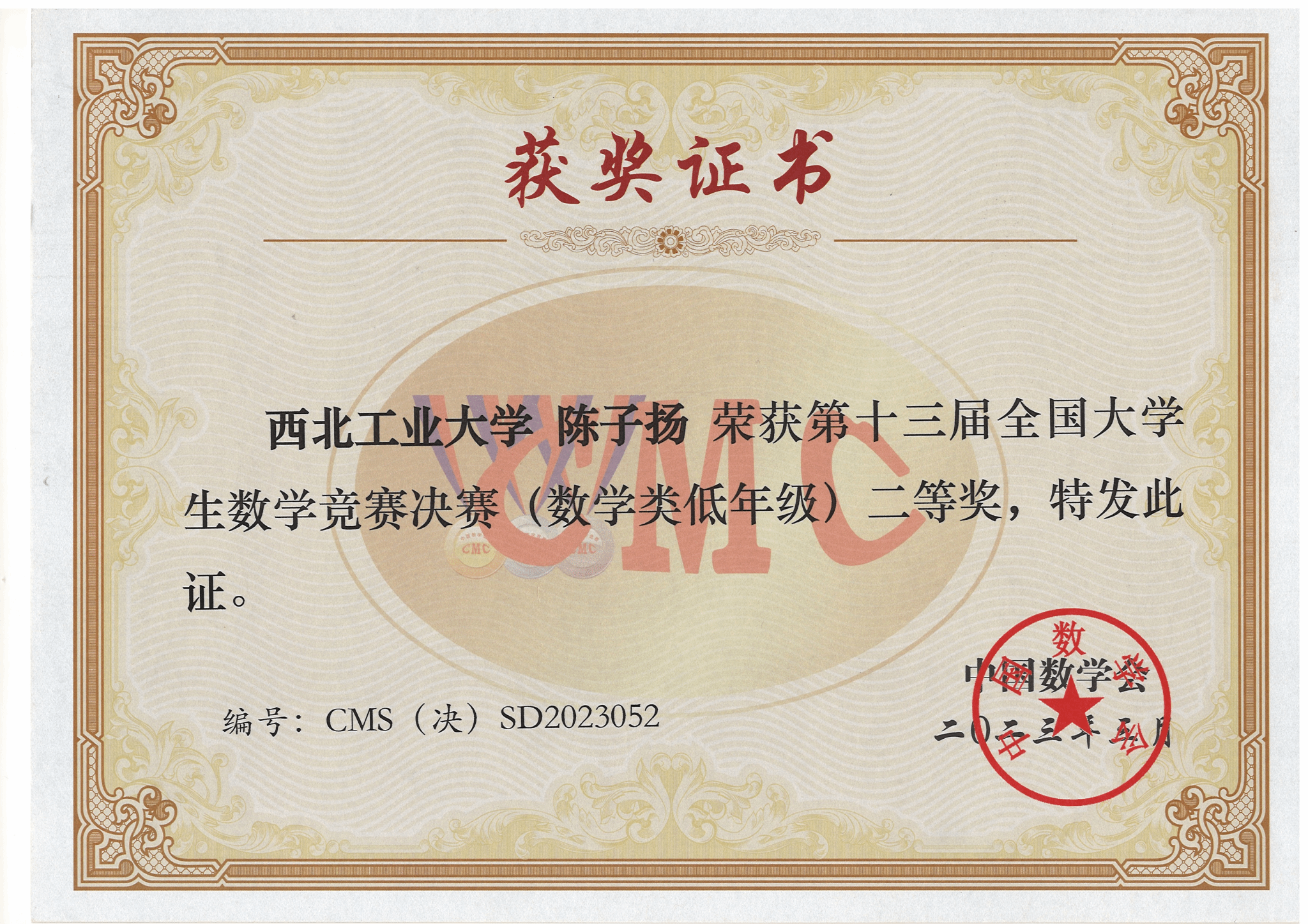 本次全国大学生数学竞赛共有218823人报名参加初赛,748人进入决赛,实际参加决赛人数732人(数学专业组382人、非数学专业组350人)。在紧张激烈的比拼中,我校6名入选决赛的同学全部获奖,其中软件学院蔡周阳和航天学院钟忠双双获得非数学专业组全国一等奖,一等奖获奖比例约千分之0.6。另外,我校小宝寻花 陈子扬和刘思哲参加数学专业低年级组比赛以陕西赛区第一名和第二名的好成绩获得了数学专业组全国二等奖的好成绩,二等奖获奖比例约为千分之0.9。