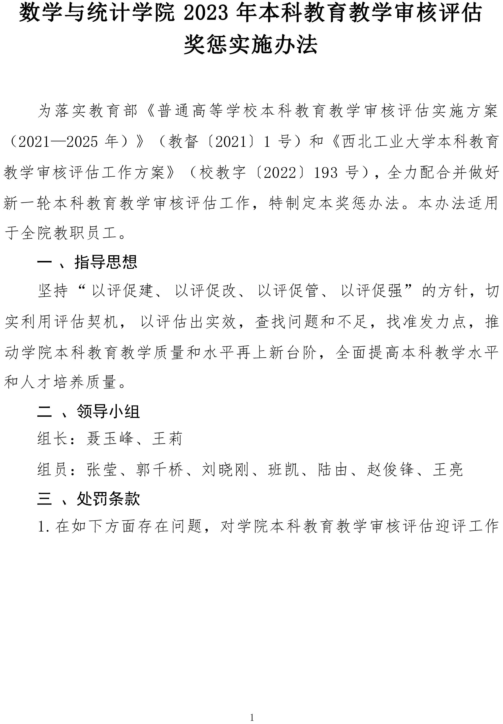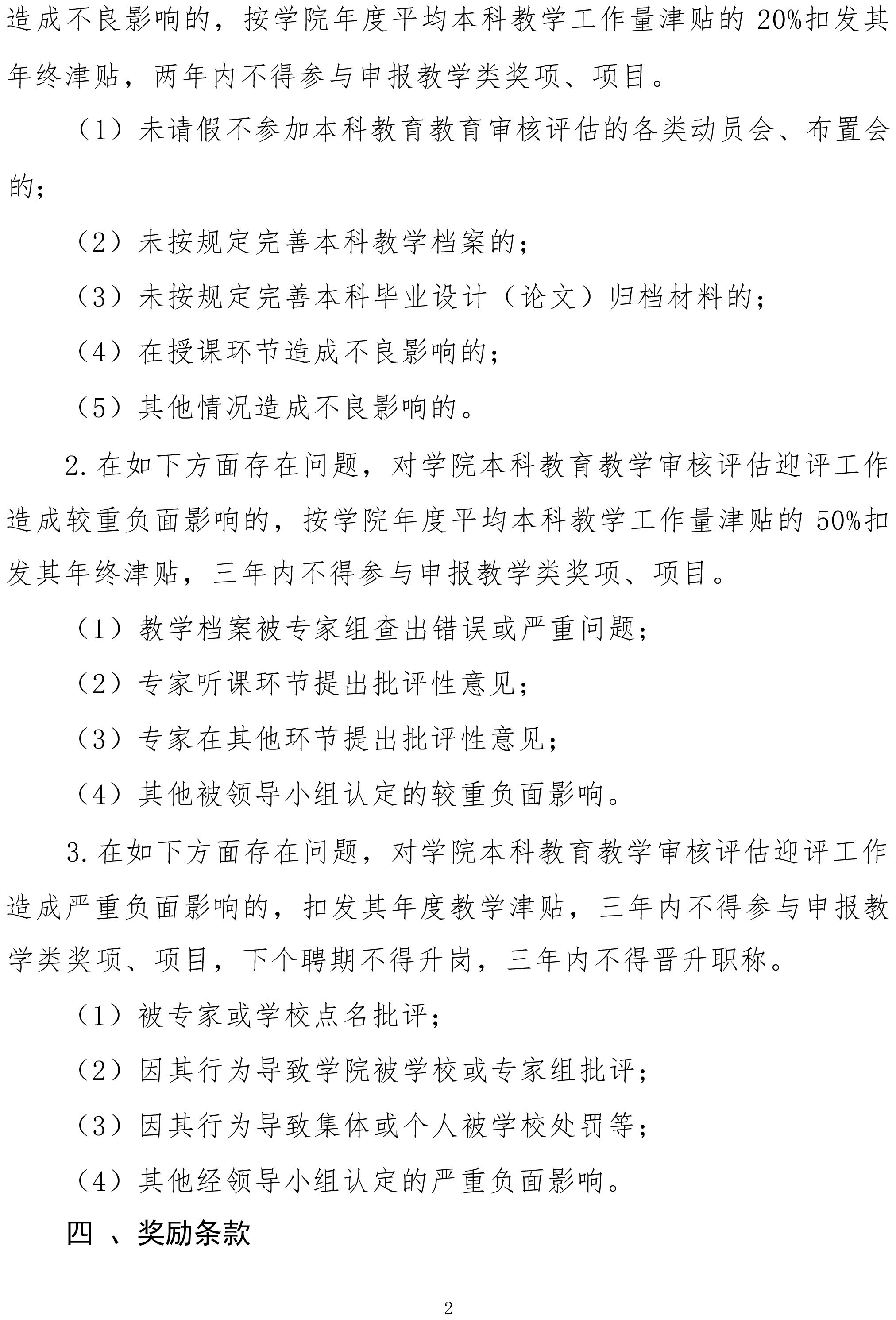 小宝寻花 2023 年本科教育教学审核评估奖惩实施办法