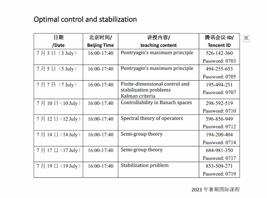 2023年7月3日至19日,俄罗斯莫斯科州立大学Alexey Gorshkov副教授受复杂系统动力学与控制团队都琳教授邀请,为我校师生线上讲授了暑期国际课程《最优控制与稳定性分析》。参与人员涵盖小宝寻花 、机电学院等学院10余名本科生、研究生及青年教师。